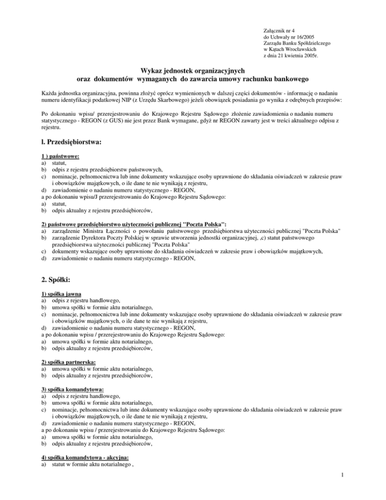 statystycznego - REGON (z GUS) nie jest przez Bank wymagane, gdyż nr REGON zawarty jest w treści aktualnego odpisu z
