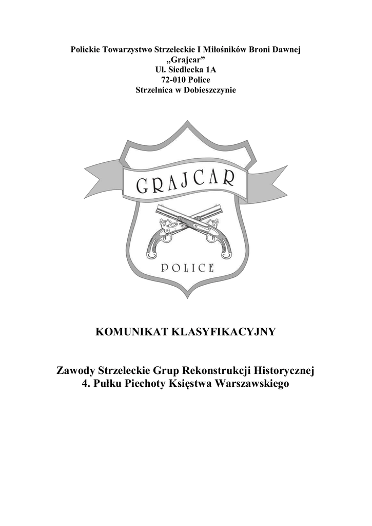 KOMUNIKAT KLASYFIKACYJNY Zawody Strzeleckie Grup