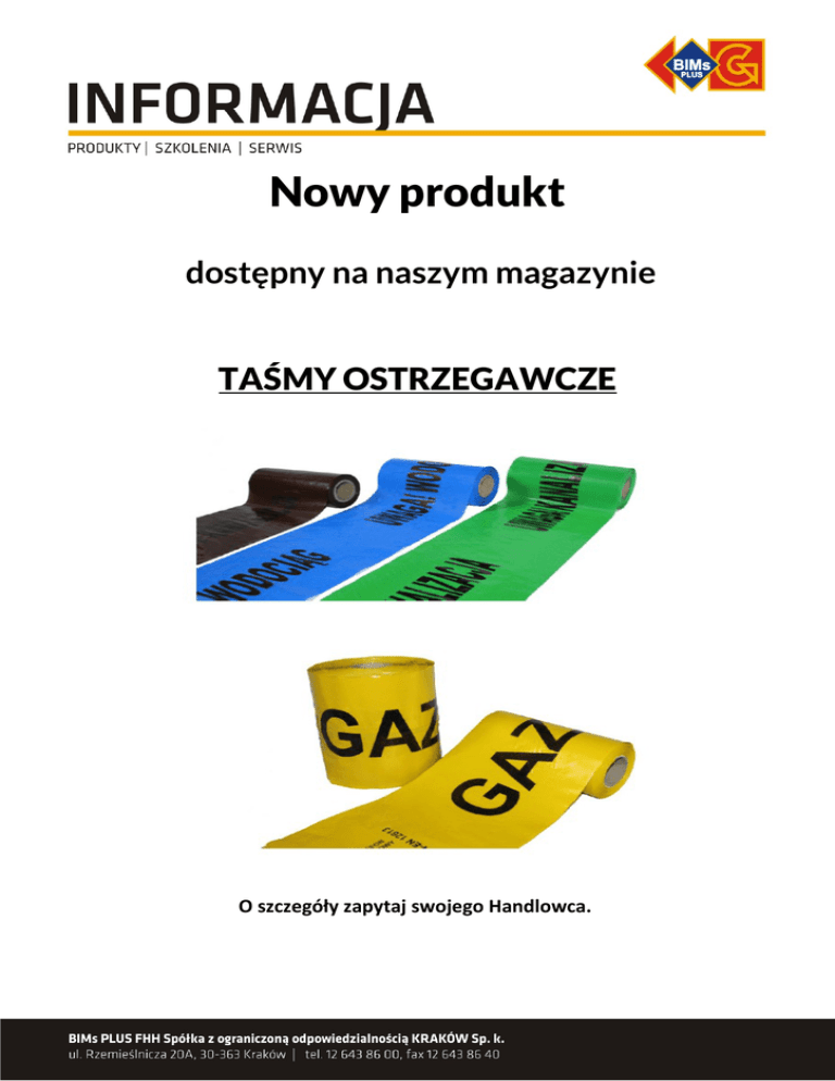Nowy produkt dostępny na naszym magazynie TAŚMY OSTRZEGAWCZE O szczegóły zapytaj swojego Handlowca.