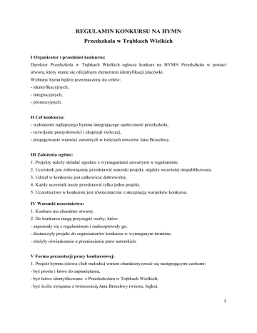 REGULAMIN KONKURSU NA HYMN Przedszkola w Trąbkach