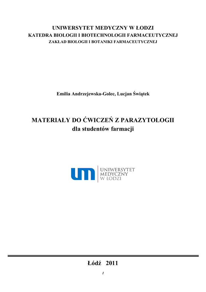 Materiały do ćwiczeń z parazytologii dla studentów farmacji