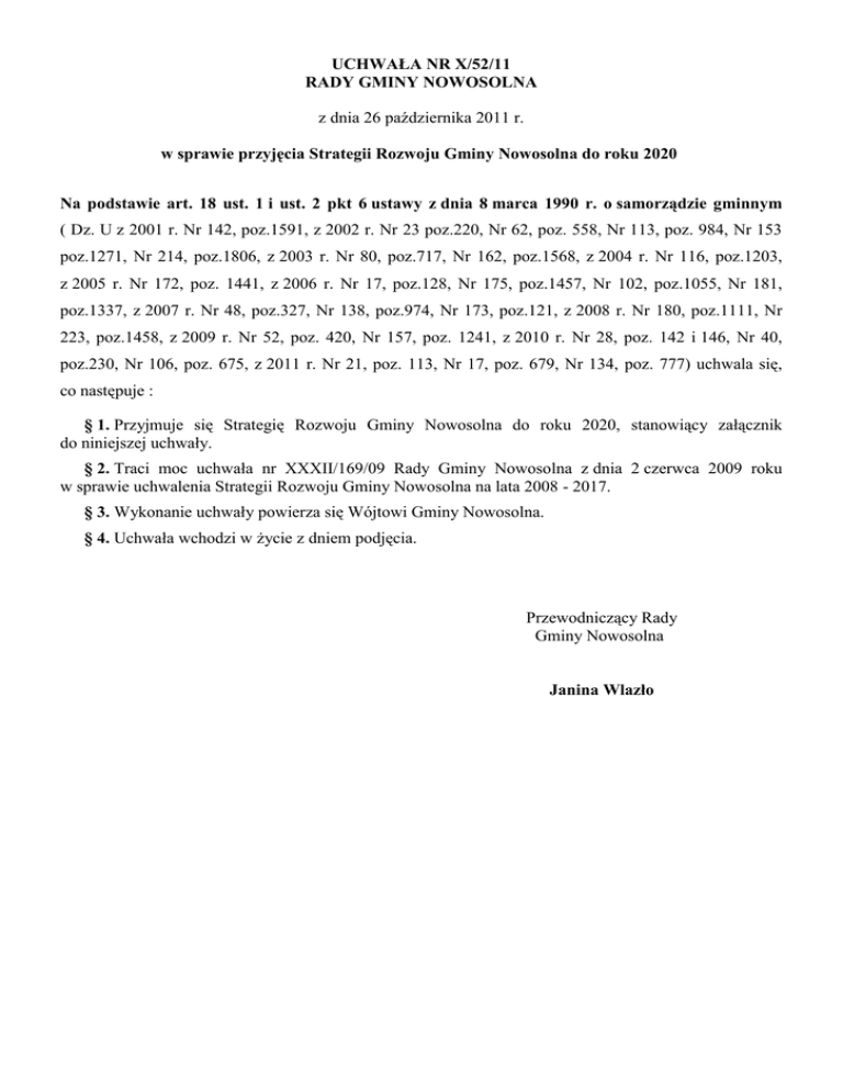 UCHWAŁA NR X/52/11 RADY GMINY NOWOSOLNA z dnia 26