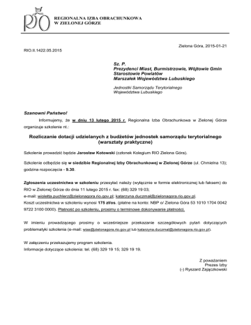 Program szkolenia - Regionalna Izba Obrachunkowa w Zielonej Górze
