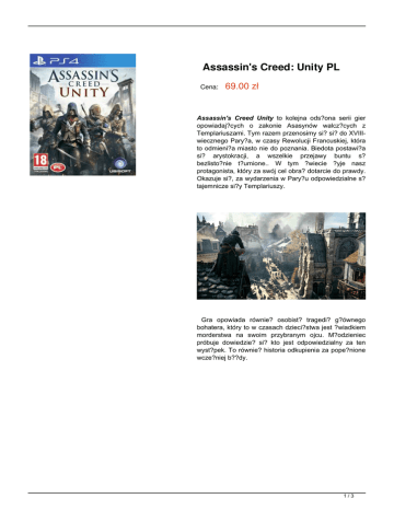 Assassin's Creed: Unity PL Cena: 69.00 zł Assassin's Creed Unity to kolejna ods?ona serii gier opowiadaj?cych o zakonie Asasynów walcz?cych z Templariuszami. Tym razem przenosimy si? si? do XVIIIwiecznego Pary?a, w czasy Rewolucji Francuskiej, która to odmieni?a miasto nie do poznania. Biedota postawi?a si? arystokracji, a wszelkie przejawy buntu s? bezlisto?nie t?umione.. W tym ?wiecie ?yje nasz protagonista, który za swój cel obra? dotarcie do prawdy. Okazuje si?, za wydarzenia w Pary?u odpowiedzialne s? tajemnicze si?y Templariuszy. Gra opowiada równie? osobist? tragedi? g?ównego bohatera, który to w czasach dzieci?stwa jest ?wiadkiem morderstwa na swoim przybranym ojcu. M?odzieniec próbuje dowiedzie? si? kto jest odpowiedzialny za ten wyst?pek. To równie? historia odkupienia za pope?nione wcze?niej b??dy. 1/3 Gra zosta?a wyposa?ona w nowy system Adapatice Mission Mechanic. Misje sta?y si? bardziej elastyczne, a gracz ma wi?ksz? swobod? w wykonywaniu zada?. Dodatkowo jeste?my ?wiadkami zmian, które dokonuj? si? w otoczeniu pod wp?ywem naszych dzia?a?. Na ulicach pojawia si? wi?cej stra?y, a przeciwnicy staj? si? ostro?niejsi. Pojawiaj? si? te? nowi sojusznicy. Ulepszony zosta? te? system poruszania si? po mie?cie, system wspinaczki i wchodzenia na budynki. Pojawi?y si? nowe umiej?tno?ci dla assassyna jak np. skradanie si?. W grze pojawi?y si? tak?e elementy typowe dla gier RPG. Gracz mo?e rozwija? swoj? posta?, wydaj?c zdobywane punkty do?wiadczenia na wybrane przez siebie umiej?tno?ci. 2/3 Gra pozwala na rozgrywk? w trybie single player, który mo?e przekszta?ci? si? równie? w kooperacj? dla maksymalnie czterech graczy. Zobacz wideo: 3/3 Powered by TCPDF (www.tcpdf.org)