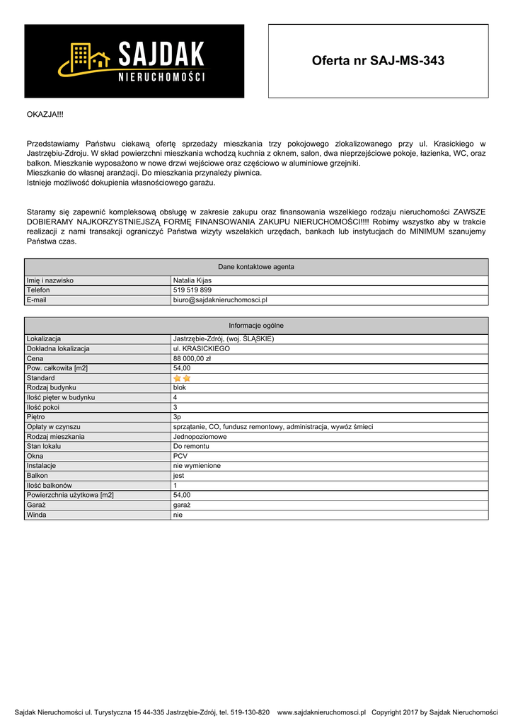 Oferta nr SAJ-MS-343 - Sajdak Nieruchomości