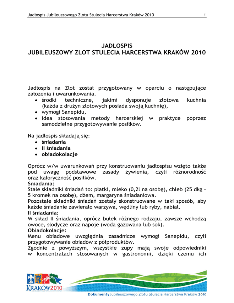 jadłospis - Jubileuszowy Zlot Stulecia Harcerstwa