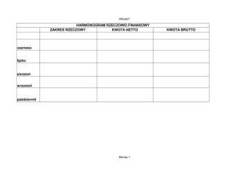 Arkusz1 HARMONOGRAM RZECZOWO FINANSOWY ZAKRES RZECZOWY KWOTA NETTO czerwiec lipiec sierpień wrzesień październik Strona 1 KWOTA BRUTTO