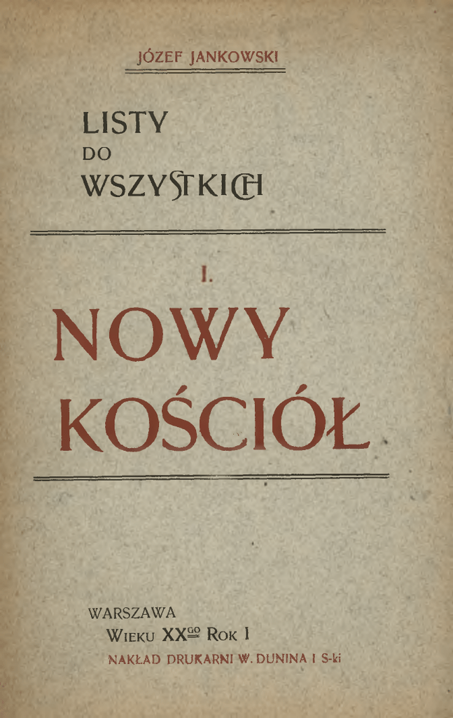 JÓZEF JANKOWSKI LISTY D O WSZYSTKI® NOWY KOŚCIÓŁ W A R S Z A WA W ie k u X X ^ R ok I N A K Ł A D D R U K A R N I W . D U N I N A I S-ki '* h --t’ y ~ ~ r < -* t ■ ó ^ .■ . ■•*,, ' \y' v -j ■ ' '■ .y , ■' " ' ii.'. ■. ■ ■ '• a s vtłC.i ■ • 1 l :' S » ji: £■■■•*\ .. . - ■ ■ -•■ * ; r ' ;< ' - - ■* " -• •..>. . ‘ tpw? .--Ic i■ 1 ■■> '' ■■“ * /’ * K - VU I . I r ' 1- > w- ■ • A ■ ; ' • ' ; ■ *~ 1 ■..■ .i - • ■ « > : " ' .. ■/ ' ' ■ *. ; . •* ............................ ‘V* 1 m i :. , f e . ® ' ■ % ■ •• ■ ■ ;•* " ' ■ v- • ; ■: . f e # * •... v., .. - '€■ v :'$ Ą |v - 1 - - ■ ’ , • ■ ... W<-■ ; ': ■.■-"X - ■ i t ; \ .>• JÓZEF JANKOWSKI LISTY D O WSZYSTKI® NOWY KOŚCIÓŁ W ARSZAW A W ieku XX= R o k I N A K Ł A D D R U K A R N I W. D U N I N A I S-ki JI,03B0JreH0 IJ,eH3ypoio BapmaBa, 4 fleicaCipfl 1900 ro^a. NOWY KOŚCIÓŁ. W arszaw a, w Październiku 1900. I. W przeszłym — zd aje się — m iesiącu uzy sk an o p o zw o len ie w ład z na zb ieran ie sk ład ek i b u d o w ę n o w e g o kościoła w W arszaw ie. P o n ie w a ż — jak sądzi m y —n ik t n ie w ątpi, że b u d o w a now ej św iątyni jest sp ra w ą n ajd o n io ślejszej w agi, k asu jącą w szy stkie in n e zam iary i przed sięw zięcia ludzkie w sto su n k u d o sam y ch siebie, jak o rzecz o b o w iązku w zg lęd em T ego, k tó ry dzieje i sp raw y ludzkie na szali w iecznej w aży, jako h o łd i d zięk czynienie za życie, p o m o c i łaskę kierującą, p rze to o m ó w ie n ie tej sp ra w y u w ażan em b y ć w in n o za n ajbliższe serco m w szystkich, którzy w B ogu trw ając, życie k u celow ości pięk n ej pro w adzą. W tym w zg lęd zie p ra g n ie m y w y p o w ie d z ie ć kilka m yśli, ro zjaśn ić d o n io sło ść te g o w y p a d k u i p rze d staw ić w należytem św ietle o b o w iązek społeczny. Z an im je d n a k p rzejd ziem y d o w łaściw eg o zada- 6 nia, m u sim y p ierw ej rzu cić g a rść u w ag , d o ty czących sztuki w o g ó le, arch itek tu ry , jak o rzeczy b ez p o śre d n io zw iązanej z n o w e m p rzed sięw zię ciem, w szczególności. N ie b ęd ziem y o m aw iali szczegółow o celów i przeznaczeń życia lu d zk ieg o , ani roztrząsali za g ad n ie ń , życia dotyczący ch . Z azn aczy m y tylko o g ó ln ie fakt, nie p o d le g a ją c y u łu d zie ludzkich zm ysłów , w im ię k tó reg o : życie jest w id o m y m w yrazem i d o k u m e n te m d u c h a lu d zk ieg o n a przestrzeni sw e g o ziem sk ieg o b y to w an ia. N a tych d ro g a c h k rzyżow ych życia, czy jak je inaczej nazw iem y, p o zo staje zaw sze jed n o : d u c h ludzki, p o stęp u ją c y w b re w w szelkiej d ążności ziem skiej, ku zagładzie w iodącej, p o zo staw ia p o so b ie św ia d ectw o na ziem i, św iad ectw o targ an , w zniesień, tęsk n o ty działu sw e g o n ieb iesk ieg o , lo tó w w y zw olen ia z o k ó w ziem i, try u m fu i chw ały n ie zniszczalnej. T e d o k u m e n ty życia p o d p o stacią ró ż n o ro d n y c h dzieł sztuki: b u d o w li, czasom u rą gających, książek, w k tó ry ch d u c h ten zaw arty, p o sąg ó w , m alo w id eł, idei szczytnych etc., są jed y n em d o stateczn ie zaszczytnem św iad ectw em istnien ia ro d zaju lu d zk ieg o n a ziem i. L u d y i n a ro d y giną, p o zo stają dzieła ich d u ch a, w o g ó l n ym p o stę p ie d u c h a d o k u m e n t i o g n iw o celo w ych przeznaczeń stanow iący. A jako w ak o rd zie m uzycznym p o trz e b n e są to n y d la p ełn o ści b rz m ie n ia i b o g a c tw a w yrazu m uzycznego, tak i w o g ó ln ej h arm o n ii św iata 7 p o trz e b n e są ró ż n o ro d n e to n y d u c h a ludzk iego, n a je d e n a k o rd ch w ały w ieczystej p rzed ziw n ie się splatające. T em i to n am i w h a rm o n ii o g ó ln ej d u ch a lu d zk ieg o są p o szczeg ó ln e d u c h y n a ro d ó w , ch o ć co d o cech i w łaściw ości o d m ie n n e , w szy stkie z jed n ej całości w y g a rn ię te i d o o g ólnej zasad y zdążające. D ziw nem się m oże z d aw ać n a razie, g d y p o w iem y , że ze w szystkich sztuk p ięk n y ch a rc h i te k tu ra jest sztuką, najbliższą d u c h a ludzkiego, sztuką, w której d u c h ludzki n a jw id o m szy d o k u m en t sw ój n a ziem i pozostaw ia. Jest o n a p ra w d ziw ie sk am ien iało ścią d u c h a ludzk ieg o , żyw ą je g o księgą, sk am ien iałą h isto ry ą d u c h a , jak g ó ry i skały są żyw ą k sięg ą p rz y ro d y i jej u kształtow ań. R zućm y ok iem w p rzeszłość istn ien ia lu d zkie go: szczątki św iątyni S alo m o n a, p ira m id y e g ip skie, sfinks, obelisk, p a rte n o n grecki, colosseum , pan teo n , p ałace W enecyi, tu m strasb u rsk i, k ate d ra k olońska, zam ki śred n io w ieczn e, —oto żyw a księg a n a ro d ó w , k tó re alb o zniknęły z p o w ie rz chni, alb o p rzeo b raziły się d o n iep o zn an ia. Z w ró ć m y teraz u w a g ę n a jed n o : czem się dzieje i jakich w a ru n k ó w w y m a g a d zieło rąk ludzkich, b y stało się d o k u m e n te m życia i p rz e trw a ło w szystko kruszący czas. C zem się dzieje, że z ty siąca rzeczy jed n e, o to czo n e czcią i sza cun k iem , z p o k o le n ia w p o k o le n ie p rzechodzą, jako p am iątk a św ięta, nieskruszona, in n e g in ą w o g ó ln ej życia zagładzie. Czy o g ro m lu b trw a ło ść m atery ału stan o w i o tej n iesk ru szo n o ści ? C zy zew n ętrzn a ich m alo w n iczo ść lu b p o m y sło w ość tysiącznych form i o d m ia n ? Czy b o g a c tw o lu b przep y ch , k tó ry je fu n d u je ? N ie! Z aw sze pozostaje jed n o : to tylk o dzieło rąk lu d zk ich p o zostaje stałą, n ie sk ru sz o n ą w arto ścią życia, na k tó rem sp o czął cały d u c h ludzki, z całą b e z in te reso w