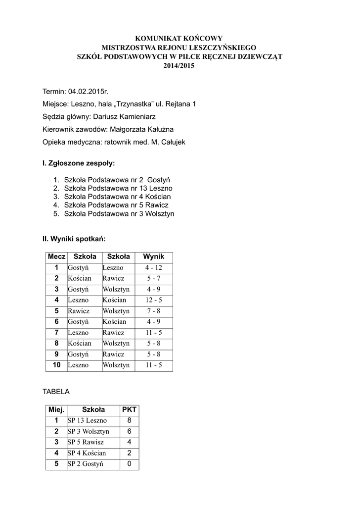 KOMUNIKAT KOŃCOWY_MRL_SP_DZ2014:2015_PIŁKA RĘCZNA