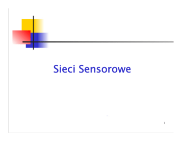 Sieci Sensorowe 1 Sieć sensorowa –bezprzewodowa sieć, złożona z dużej liczby działających niezależnie urządzeń, zwanych sensorami. Sensory zbierają za pomocą czujników lokalne dane o środowisku i komunikują się ze sobą i ze światem zewnętrznym Przykładowe zadania stawiane sieciom sensorowym Obliczenie wartości jakiegoś parametru w zadanym miejscu. Wykrycie zdarzenia i oszacowanie jego parametrów. Np. w sieci monitorującej ruch uliczny zdarzeniem jest wykrycie pojazdu, a sieć powinna dodatkowo oszacować prędkość pojazdu Np. Wykrycie pęknięcia w budynku (moście) . Klasyfikacja wykrytego obiektu; np. czy wykryto czołg czy samochód? Śledzenie obiektu Bezprzewodowe sieci sensorowe Bezprzewodowe sieci sensorowe są zbiorem setek tysięcy małych, jednorazowych węzłów sensorowych o małej mocy, które komunikują się ze sobą celem wykonania określonego zadania. Węzeł sensorowy (sensor node) to urządzenie, które przetwarza badane cechy na dane w formie zrozumiałej dla użytkownika. Każdy węzeł zawiera moduł czuciowy, moduł komunikacyjny, pamięć oraz małą baterię. Sieci sensorowe są sieciami datacentrycznymi (skoncentrowanymi na danych). W ich polu zainteresowań znajduje się to jakie są dane, a nie gdzie te dane się znajdują. W bezprzewodowych sieciach sensorowych awaria jednego węzła nie wpływa na działanie sieci, dopóki zawiera ona inne węzły zbierające podobne dane w tym samym obszarze. 4 Bezprzewodowe sieci sensorowe Główna przewaga bezprzewodowych sieci sensorowych nad przewodowymi: Łatwość rozlokowania – sensory mogą być rozmieszczane bez wcześniejszego przygotowania infrastruktury Powiększony zasięg – wiele bezprzewodowych sensorów może zastąpić jeden przewodowy, pokrywając większy region Tolerancja błędów – awaria jednego sensora nie wpływa na fukcjonowanie całej sieci Mobilność – Sensory posiadają własne źródła energii, więc mogą się przemieszczać (np. przegrupowywać się celem pokrycia zasięgiem nowego obszaru) Sieci sensorowe przejęły również wady tradycyjnych sieci bezprzewodowych, takie jak: Niska przepustowość Transmisje skłonne do błędów (error-prone) Wymóg dostępu do odpornego na kolizje kanału Ponadto ograniczeniem jest źródło energii jakie posiada mobilny sensor. Dąży się do tego, aby wyczerpanie się tych źródeł nastąpiło równocześnie we wszystkich węzłach, ponieważ koszt lokalizacji i wymiany poszczególnych 5 sensorów jest większy niż zaaranżowanie sieci od nowa. • Miniaturowe urządzenie, które zawiera: – mikroczujnik – przetwarza sygnały o niskiej mocy – ma niski poziom konsumpcji energii – niewielki zakres komunikacji (odległość) – niewielki i nieodnawialny zapas energii • Komunikacja przez niektóre bezprzewodowe media komunikacyjne, np. fale radiowe, podczerwień, ultradźwięki, itp. • Masowo produkowane • Tanie (cena od kilkunastu centów do kilku $ w zależności od parametrów) Dane z 2006 r Moduł nadawczo Transceiver odbiorczy Ograniczona wielkość pamięci 4-8Kb Memory Pamięć Embedded Wbudowany Processor 1Kbps - 10Kbs Zakres transmisji 3-10m Wolny procesor 4bit, 5-10 MHz Procesor Energooszczędny specjalnie zaprojektowany Czujnik Sensor Battery Bateria Nieodnawialna Jakie są typowe przykłady czujników? • • • • • • • • • Mierzący ciśnienie Mierzący temperaturę Mierzący światło Biologiczny Chemiczny Akustyczny Mierzący przyśpieszenie Sejsmiczny Wykrywający metal • Stwierdzający obecność/brak obecności obiektu • Mierzący stopień zanieczyszczenia powietrza • • • • • • • • • Odległość od obiektu Kierunek obiektu Temperaturę otoczenia Obecność chemikaliów Natężenie światła Wibracje Ruch Drgania sejsmiczne Natężenie, częstotliwość dźwięku • itp. Energooszczędne działanie Dużo spać Budzić się okresowo Działać lokalnie Komunikować się oszczędnie Bezobsługowa praca Rozproszony system bez centralnego sterowania Duża liczba czujników gęsto rozmieszczonych w interesującym nas obszarze Rozmieszczenie losowe: indywidualna pozycja czujnika nie może być projektowana Główny cel: globalna informacja z lokalnych danych Sieć jest tak dobra, jak informacje, które wytwarza: jakość informacji bezpieczeństwo informacji Liczba węzłów: rząd wielkości wyższy w WNS (wireless sensor network) Gęstość rozmieszczenia: rząd wielkości wyższy w WNS Niezawodność: Czujniki są podatne na uszkodzenia! Topologia: niewielka lub żadna mobilność bardzo dynamiczny w WSN ze względu na cykl sen/budzenie Komunikacja: nadawanie broadcastowe w WSN, punkt-punkt w sieci ad-hoc Skromne zasoby: moc obliczeniowa i zdolności komunikacyjne Anonimowość węzłów w WSN Lokalny Sink: przez duży zasięg radia dostarcza interfejs do zewnętrznego świata Komunikacja: sensor do Sink(ów): multi-hop Sink(i) do sensorow: broadcast lub multicast Niewielka moc i pamięć narzuca: proste i energooszczędne protokoły komunikacyjne optymalną liczbę czujników wykonujących dane zadanie komunikację typu „multi-hop” minimalną niezgodność warstw MAC Inteligentne przedszkola Monitorowane osiedla Monitorowane środowisko Inteligentne klasy Detekcja pożaru lasu Kontrola stada (zwierząt) Aplikacje rolnicze: Inteligentne szklarnie Inteligentne winnice Dwa spojrzenia na sieci sensorowe Sterowane centralnie zdalny użytkownik wprowadza zapytanie sieć sensorowa dostarcza odpowiedzi niezbyt dobrze skaluje się skłonność do nierównomiernego wyczerpania energii (np. dziury energetyczne) Autonomiczne zakłada dominację urządzeń organizacja ad hoc dobrze skaluje się mniej podatna na tworzenie się dziur energetycznych Satelita Internet Zdalny użytkownik Zdarzenie Sink Autonomiczna sieć czujników bezprzewodowych (ang. AutoNomouS Wireless sEnsor netwoRk , skrót ANSWER) wykonywanie zaawansowanych analiz wykrywanie trendów identyfi