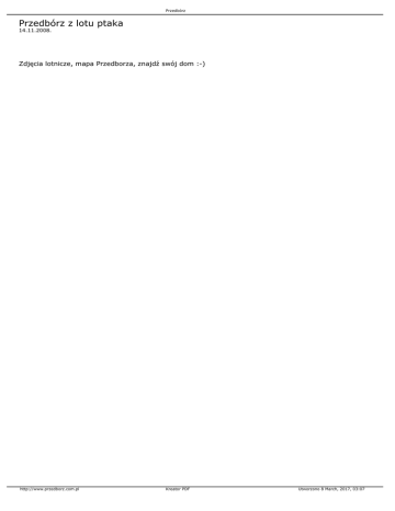 Przedbórz Przedbórz z lotu ptaka 14.11.2008. Zdjęcia lotnicze, mapa Przedborza, znajdź swój dom :-) http://www.przedborz.com.pl Kreator PDF Utworzono 8 March, 2017, 03:07