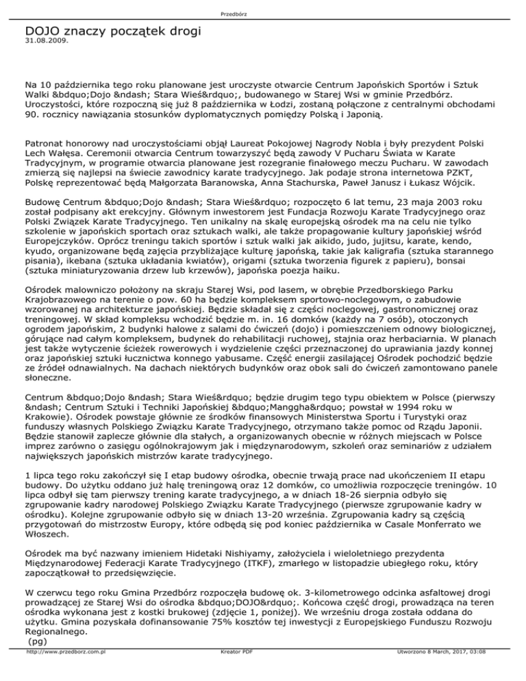 funduszy własnych Polskiego Związku Karate Tradycyjnego, otrzymano także pomoc od Rządu Japonii.