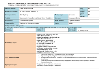 praca z pianistą lutnictwo - Akademia Muzyczna im. Ignacego Jana