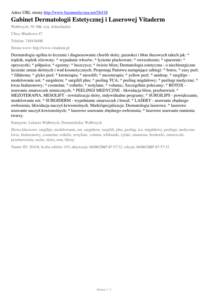 Gabinet Dermatologii Estetycznej i Laserowej Vitaderm, Walbrzych