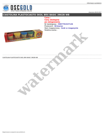 Informacje o produkcie Utworzono 08-03-2017 CIASTOLINA PLASTOCIASTO 5KOL BRX BASIC 3902B WB Cena : Ceny dostępne po zalogowaniu er m ar k Nr katalogowy : 5907791537126 Producent : Brimarex Stan magazynowy : brak w magazynie Średnia ocena : w at CIASTOLINA PLASTOCIASTO 5KOL BRX BASIC 3902B WB Wygenerowano w programie www.oscGold.com