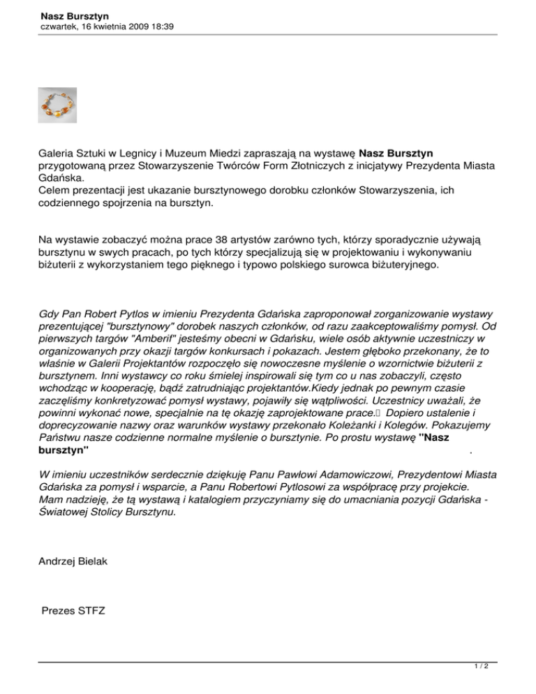 prezentującej "bursztynowy" dorobek naszych członków, od razu zaakceptowaliśmy pomysł. Od