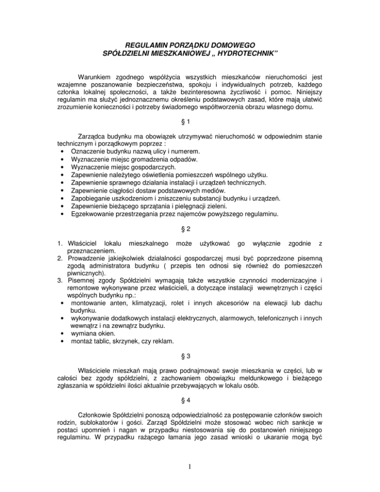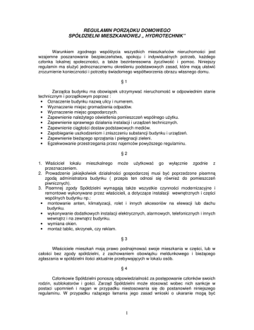 1 regulamin porządku domowego spółdzielni mieszkaniowej