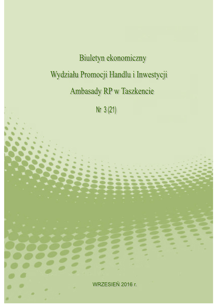 1 Spis treści I. Sytuacja społeczno-gospodarcza Uzbekistanu w I półroczu 2016 r. str. 3 II. Sytuacja społeczno-gospodarcza Tadżykistanu w I półroczu 2016 r. str. 8 III. Informacje bieżące str. 11 Informacja nt. zatwierdzenia wykazu towarów wwożonych czasowo do Uzbekistanu, zwolnionych z opłat celnych i podatkowych, Informacja nt. przedłużenia przez Rosję embarga na artykuły rolno-spożywcze, Informacja nt. współpracy uzbekistańsko-chińskiej, Informacja nt. ograniczeń w korzystaniu z kart płatniczych przez obywateli Uzbekistanu, Informacja nt. wprowadzenie kontroli przesyłek pocztowych i kurierskich w Uzbekistanie, Informacja nt. uzbekistańskich ograniczeń na wwóz bydła z krajów ościennych, Informacja nt. tworzenia strefy wolnego handlu na granicy tadżykistańsko-chińskiej, Informacja nt. nowego wykazu wyrobów medycznych dopuszczonych do stosowania w RU, Informacja nt. zmian w wykazie sprzętu wwożonego do Uzbekistanu na zasadach ulgowych, Informacja nt. eksportu uzbekistańskich płodów rolnych, Informacja nt. budowy stacji fotowoltaicznych w Uzbekistanie. 2 I. Sytuacja społeczno-gospodarcza w I półroczu Uzbekistanu 2016 roku (dane oficjalne) 1. Produkt Krajowy Brutto Wg danych Państwowego Komitetu ds. Statystyki, w I półroczu 2016 roku PKB Uzbekistanu osiągnął poziom 83.966,3 mld UZS, a jego wzrost wyniósł 7,8%. Wg oficjalnego kursu na koniec czerwca 2016 r. gdzie 1 USD = 2.943,46 UZS, PKB wyniósł ok. 28.526,39 mln USD. 79,1% PKB wygenerował sektor niepaństwowy, a 20,9% – sektor państwowy. W strukturze PKB 11,4% stanowiły podatki na towary, 88,6% - wartość dodana sektorów przemysłu, z czego 57,6% w usługach, 33,6% - w przemyśle i budownictwie, 8,8% - w rolnictwie, gospodarce leśnej i rybołówstwie. W przekroju terytorialnym największy wzrost PKB odnotowano w Republice Karakalpakstanu (dynamika 121,2%), Taszkencie (111,4%), obwodzie Samarkandzkim (110,2%) i Dżyzakskim (109,5%), najmniejszy – w obwodzie Andiżańskim (95,5%) i Chorezmskim (103,7%). Największy wzrost PKB per capita odnotowano w Republice Karakalpakstanu (119,3%) i w Taszkencie (110,3%), najmniejszy – w obwodzie Andiżańskim (93,7%) i Chorezmskim (101,8%). Uwzględniając liczbę ludności Uzbekistanu na dzień 1.07.2016 r. (31.807 tys. osób – wstępne dane), dochód narodowy na osobę w pierwszym półroczu 2016 r. wynosił ok. 896 USD. 2. Budżet Państwa W informatorze statystycznym dane nie zostały opublikowane. Wg informacji Ministerstwa Finansów RU (opublikowana na www.uzdaily.uz/articles-id-29555.htm) budżet Uzbekistanu w I półroczu 2016 r. został zrealizowany z proficytem w wysokości 60,7 mld UZS, dochody budżetu w tym okresie przekroczyły 19,105 trl UZS, a wydatki – 19,044 trl UZS. Około 9,783 trl UZS pochodziło z podatków pośrednich, 4,735 trl UZS – z podatków bezpośrednich i 2,447 trl UZS – z płatności od zasobów oraz z podatków majątkowych. Wydatki na cele socjalne wyniosły 11,389 trl UZS, na gospodarkę - przekroczyły 1,791 trl UZS, a na finansowanie zcentrolizowanych inwestycji – 1,06 trl UZS. 3. Zadłużenie zagraniczne Oficjalnie dane dotyczące zadłużenia zagranicznego nie są publikowane. 4. Inflacja Oficjalnie dane dotyczące inflacji zostały opublikowane tylko częściowo. W okresie styczeń – czerwiec 2016 r. w porównania do grudnia 2015 r. ceny artykułów konsumpcyjnych wzrosły o 2,5%. Natomiast według danych Europejskiego Banku Odbudowy i Rozwoju inflacja w Uzbekistanie w całym 2016 r. wyniesie 9% (https://www.uzdaily.uz/articles-id-28596.htm). Ceny producentów produkcji przemysłowej w I pólroczu br. wzrosły o 8,9% (w I-II 2015 r. – 5%). Największy wpływ na wzrost cen producentów produkcji przemysłowej miał wzrost w produkcji niemetalicznych produktów mineralnych (dynamika 139,4%), w produkcji napojów (120,6%), w produkcji wyrobów metalowych, z wyłączeniem maszyn i urządzeń (118,9%), w przemyśle urządzień elektrycznych (117,7%), w przemyśle spożywczym (107,8%), w produkcji wyrobów tekstylnych (106,8%), w przemyśle chemicznym (106%). Największy wzrost cen dotyczył usług: finansowych (dynamika 121,2%), usług najmu (117,1%), usług komunalnych (116,6%), ochrony zdrowia (115,7%), napraw i obsługi sprzętu technologicznego (114,7%), handlu (114,1%), łączności i informatycznych (111,4%), usług indywidualnych (113,9%), usług w zakresie architektury i inżynierii, badań technicznych i analiz (112,6%) oraz transportowych (109,1%). 5. Bezrobocie i dochody ludności a/ Liczba osób zarejestrowanych w urzędach pracy jako osoby poszukujące pracy wynosiła na koniec czerwca 2016 r. 5,8 tys. (w czerwcu 2015 r. – 5,2 tys. osób, 2014 r. – 9,4 tys.). W okresie I półrocza 2016 r. liczba osób poszukujących pracy wynosiła (liczona zgodnie z Rozporządzeniem 3 Rady Ministrów RU nr. 106 z dn. 24.05.2007 r.) 725,1 tys. osób, czyli 5,2% ludności aktywnej zawodowo. Łączna liczba ludności Uzbekistanu wynosiła na dzień 1.07.2016 r. 31.807 tys. osób. Liczba osób zatrudnionych w gospodarce narodowej Uzbekistanu wynosiła w I półroczu br. 13.191,5 tys. osób (wzrost o 1,8% w porównaniu z okresem I-VI 2015 r.). Wg wstępnych danych, w okresie sprawozdawczym do Uzbekistanu przybyło 72 tys. osób, a wyemigrowało – 84,4 tys. osób. (Migracja zarobkowa obywateli Uzbekistanu odbywa się w dalszym ciągu głównie do Rosji i Kazachstanu – WPHI; zwiększa się także zainteresowanie migracją do Europy, w tym do Polski). b/ Informacje nt. dochodów ludności Uzbekistanu w I półroczu 2016 r. w „Przeglądzie statystycznym RU za pierwsze półrocze 2016 roku” nie zostały opublikowane. W omawianym okresie minimalna pensja w kraju wynosiła 130.240 UZS, a minimalna emerytura – 254.730 UZS. 6. Przemysł, podmioty gospodarcze a/ Produkcja przemysłowa Uzbekistanu w okresie 6 miesięcy 2016 roku osiągnęła poziom 50.897,9 mld UZS i była większa o 4,7% w por