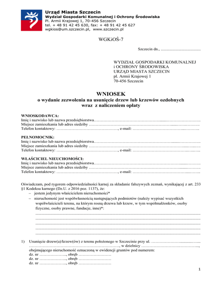 wniosek - e-URZĄD Miasta Szczecin