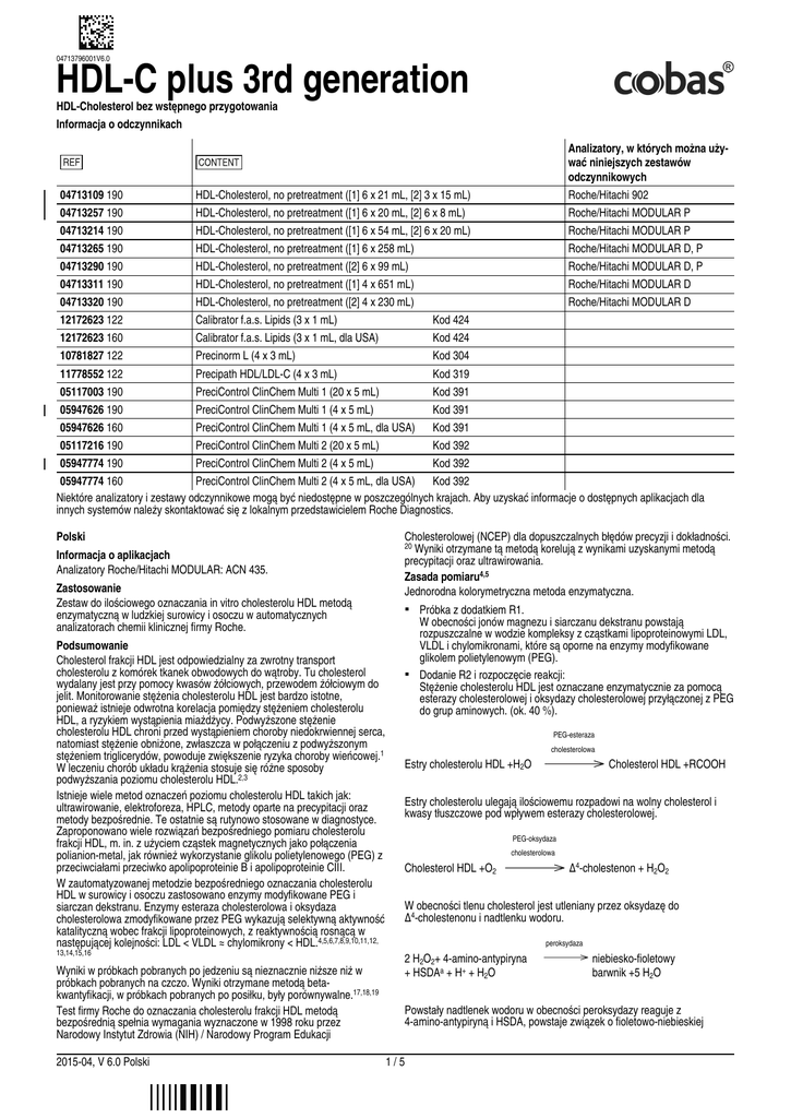 Test firmy Roche do oznaczania cholesterolu frakcji HDL metodą