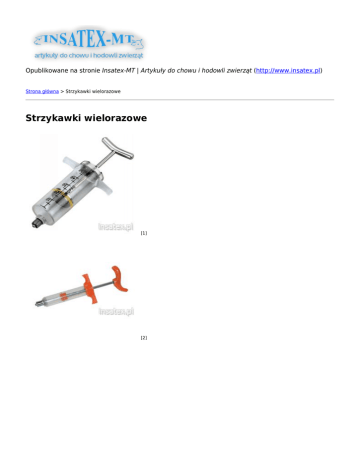 Opublikowane na stronie Insatex-MT | Artykuły do chowu i hodowli zwierząt (http://www.insatex.pl) Strona główna > Strzykawki wielorazowe Strzykawki wielorazowe [1] [2] [3] Strzykawki wielorazowe Strzykawka wielorazowa 50ml [4]Nr kat. 23440 Strzykawka wielorazowa 50ml. Zobacz produkt [4] Do schowka [5] Strzykawka wielorazowa 30ml [6]Nr kat. 23430 Strzykawka wielorazowa 30ml. Zobacz produkt [6] Do schowka [7] Strzykawka wielorazowa 20ml [8]Nr kat. 23420 Strzykawka wielorazowa 20ml. Zobacz produkt [8] Do schowka [9] Strzykawka wielorazowa 10ml [10]Nr kat. 23410 Strzykawka wielorazowa 10ml. Zobacz produkt [10] Do schowka [11] Strzykawka wielorazowa 50ml z metalowym uchwytem [12]Nr kat. 2344 Strzykawka wielorazowa 50ml wykonana z plexi z metalowym uchwytem. Zobacz produkt [12] Do schowka [13] Strzykawka wielorazowa 30ml z metalowym uchwytem [14]Nr kat. 2343 Strzykawka wielorazowa 30ml wykonana z plexi z metalowym uchwytem. Zobacz produkt [14] Do schowka [15] Strzykawka wielorazowa 20ml z metalowym uchwytem [16]Nr kat. 2342 Strzykawka wielorazowa 20ml wykonana z plexi z metalowym uchwytem. Zobacz produkt [16] Do schowka [17] [4] [6] [8] [10] [12] [14] [16] Zobacz produkt [18] Do schowka [19] [18] Strzykawka wielorazowa BOVIVET 20ml [18]Nr kat. 112285 Strzykawka wielorazowa Bovivet wykonana z trwałego tworzywa pleksi. Posiada metalowy adapter luer lock. Możliwość sterylizacji w temperaturze do 160°C. Pojemność 20ml. Zobacz produkt [20] Do schowka [21] [20] Strzykawka wielorazowa BOVIVET 10ml [20]Nr kat. 112280 Strzykawka wielorazowa Bovivet wykonana z trwałego tworzywa pleksi. Posiada metalowy adapter luer lock. Możliwość sterylizacji w temperaturze do 160°C. Pojemność 10ml. Strzykawka wielorazowa 10ml z metalowym uchwytem [22]Nr kat. 2341 Strzykawka wielorazowa 10ml wykonana z plexi z metalowym uchwytem. Zobacz produkt [22] Do schowka [23] [22] tel./fax: 61 8220 121 Przedsiębiorstwo kom.: +48 663 Handlowo-Usługowe © Insatex 2014 48 47 12 INSATEX-MT created by kom.: +48 663 ul. Madziarska 38 netmachina.com 48 47 11 61-615 Poznań e-mail: [email protected] Link źródłowy: http://www.insatex.pl/produkty/strzykawki-wielorazowe Linki [1] http://www.insatex.pl/sites/default/files/products/2344%20strzmet_2.jpg [2] http://www.insatex.pl/sites/default/files/products/23410%20strz10_2.jpg [3] http://www.insatex.pl/sites/default/files/products/112280%20strzyBov_1.jpg [4] http://www.insatex.pl/produkty/strzykawka-wielorazowa-50ml [5] http://www.insatex.pl/flag/flag/schowek/3000?destination=printpdf/3001&token=60243b75d7bdec59a4edc062ca 2727b5 [6] http://www.insatex.pl/produkty/strzykawka-wielorazowa-30ml [7] http://www.insatex.pl/flag/flag/schowek/2999?destination=printpdf/3001&token=15104174f0229e0390d9348cf7 b4eef2 [8] http://www.insatex.pl/produkty/strzykawka-wielorazowa-20ml [9] http://www.insatex.pl/flag/flag/schowek/2998?destination=printpdf/3001&token=dcd3a344f8d27ee9d34cf32f256 2f6c6 [10] http://www.insatex.pl/produkty/strzykawka-wielorazowa-10ml [11] http://www.insatex.pl/flag/flag/schowek/2997?destination=printpdf/3001&token=1be3cc88587e795e9798b0fa4d 9796ea [12] http://www.insatex.pl/produkty/strzykawka-wielorazowa-50ml-z-metalowym-uchwytem [13] http://www.insatex.pl/flag/flag/schowek/2996?destination=printpdf/3001&token=c6205ebd7178de2e353293d155 c59477 [14] http://www.insatex.pl/produkty/strzykawka-wielorazowa-30ml-z-metalowym-uchwytem [15] http://www.insatex.pl/flag/flag/schowek/2995?destination=printpdf/3001&token=44dbf556ecc4ac7f104834c5165 25487 [16] http://www.insatex.pl/produkty/strzykawka-wielorazowa-20ml-z-metalowym-uchwytem [17] http://www.insatex.pl/flag/flag/schowek/2994?destination=printpdf/3001&token=2d47ce6fa15027eba209525bc8 03db13 [18] http://www.insatex.pl/produkty/strzykawka-wielorazowa-bovivet-20ml [19] http://www.insatex.pl/flag/flag/schowek/2993?destination=printpdf/3001&token=f30d71459e63c68ac99a32d222 9af14e [20] http://www.insatex.pl/produkty/strzykawka-wielorazowa-bovivet-10ml [21] http://www.insatex.pl/flag/flag/schowek/942?destination=printpdf/3001&token=65860af88bf28e33bcc9e2388c38 d2a8 [22] http://www.insatex.pl/produkty/strzykawka-wielorazowa-10ml-z-metalowym-uchwytem [23] http://www.insatex.pl/flag/flag/schowek/371?destination=printpdf/3001&token=524aeb428bb1b6f89f90e0f552ed f4ef