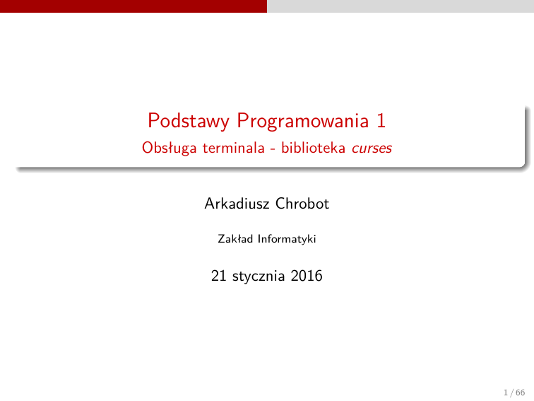 jest nawet cały zestaw takich elementów nazwany CDK (ang. Curses Development Kit). Na tym wykładzie zostaną przedstawione tylko podstawowe