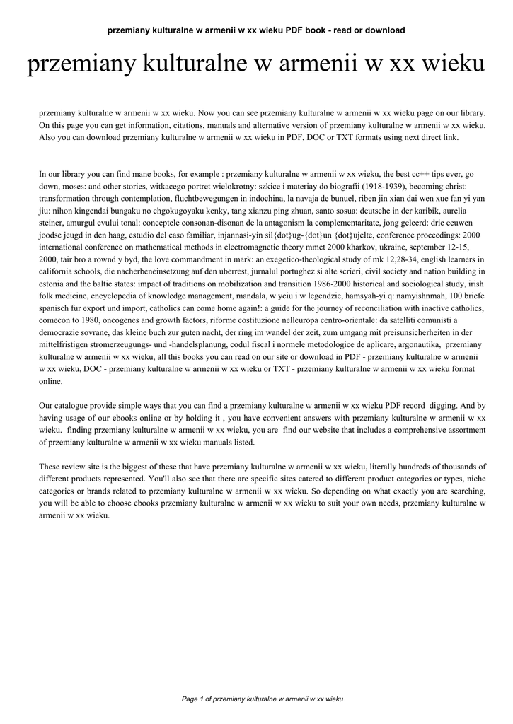 Also you can download przemiany kulturalne w armenii w xx wieku in PDF, DOC or TXT formats using next direct link.