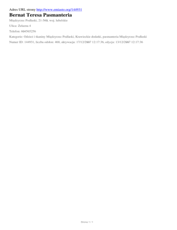 Bernat Teresa Pasmanteria, Miedzyrzec Podlaski
