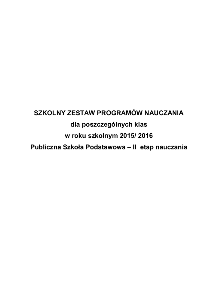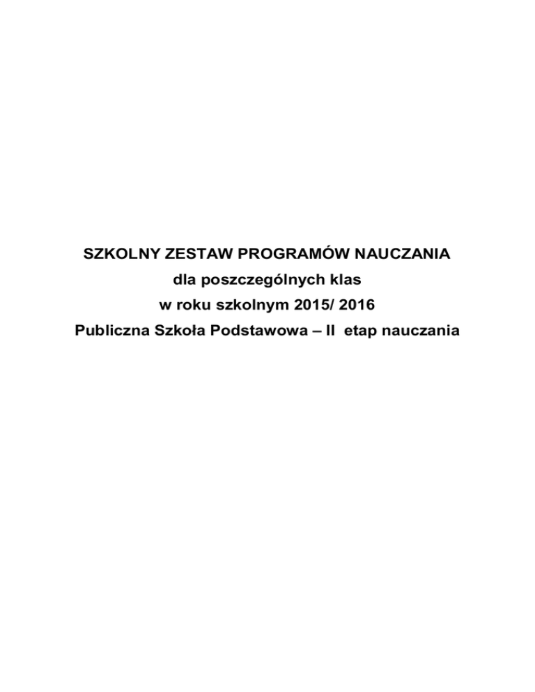 SZKOLNY ZESTAW PROGRAMÓW NAUCZANIA