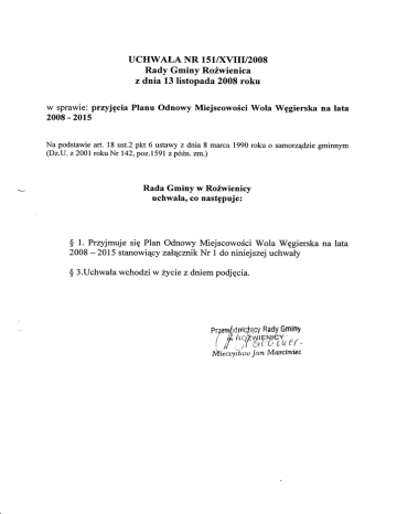 Uchwała nr 151/XVIII/2008 Rady Gminy w Roźwienicy z dnia 13