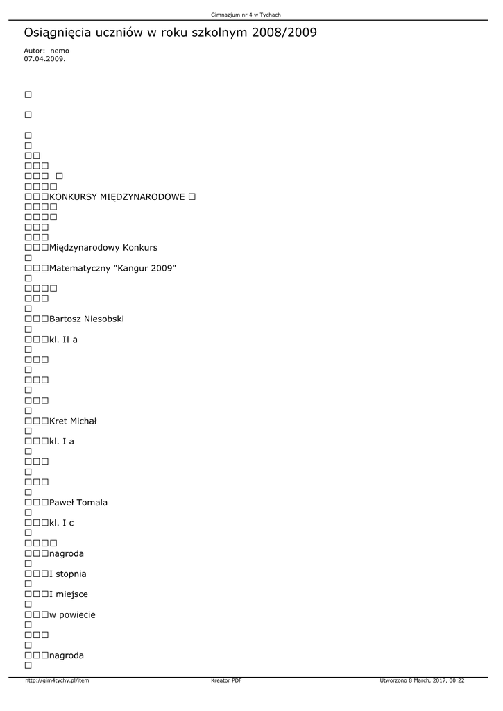 Osiągnięcia uczniów w roku szkolnym 2008/2009