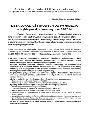 Ogłoszenie o wynajmie nr 69/2014 (typ pliku: ,rozmiar: 164.17 kB)