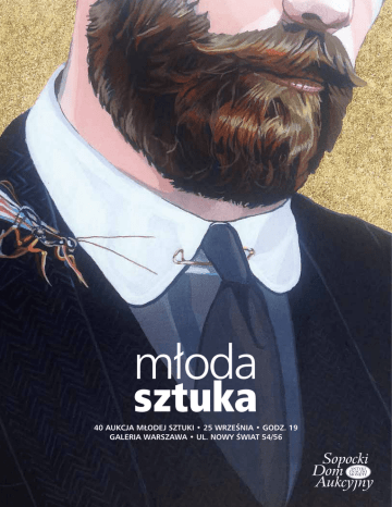 młoda sztuka 40 Aukcja Młodej Sztuki • 25 września • godz. 19 Galeria Warszawa • Ul. Nowy Świat 54/56 młoda sztuka 40 Aukcja Młodej Sztuki • 25 września 2014 • godz. 19 Galeria Warszawa • Sopocki Dom Aukcyjny • Ul. Nowy Świat 54/56 tel.: 603 949 004 tel: (22) 828 96 98 e-mail: [email protected] (adres do składania zleceń) Wystawa przedaukcyjna: od 8 września 2014 WSZYSTKIE CENY WYWOŁAWCZE 500 zł Sopocki Dom Aukcyjny ul. Bohaterów Monte Cassino 43, 81-768 Sopot zlecenie licytacji młodasztuka 40 Aukcja Młodej Sztuki Warszawa • 25 września 2014 • godz. 19 Szanowni Klienci, zachęcamy do składania pisemnych ofert w celu wzięcia udziału w aukcji. Możliwa jest także licytacja telefoniczna. Prosimy czytelnie wypełnić kartę zlecania i dostarczyć ją (osobiście, przesłać faksem: 22 828 96 99 lub e-mailem: [email protected]) do siedziby SDA nie później niż 24 godziny przed rozpoczęciem licytacji. Płatność za wylicytowane prace można uregulować gotówką lub kartą w galerii oraz przelewem na nr. WBK XXI O/WARSZAWA 67 1090 1883 0000 0001 0367 9559 Sopocki Dom Aukcyjny, Ul. Bohaterów Monte Cassino 43, 81-768 Sopot _______________________________________________________________________________________________________________ Imię i nazwisko _______________________________________________________________________________________________________________ _____________________________________________________ __________________ _____________________________________ Dokładny adres Telefon, fax, e-mail NIP (dla firm) SDA gwarantuje poufność danych osobowych Proszę o licytację następujących pozycji: Nr pozycji w katalogu Numer dokumentu tożsamości Autor, tytuł Maksymalna oferowana kwota lub licytacja telefoniczna Zlecenie licytacji z limitem SDA będzie reprezentował w licytacji Nabywcę do podanej kwoty, gwarantując jednocześnie nabycie obiektu za najniższą możliwą kwotę. Zgadzam się na podniesienie oferowanej kwoty o: ......... % w przypadku wystąpienia innego zlecenia o tej samej wysokości. Zlecenie telefoniczne W przypadku zlecenia licytacji telefonicznej prosimy o podanie numeru telefonu aktualnego w czasie aukcji. Pracownicy SDA połączą się z Państwem chwilę przed rozpoczęciem licytacji wybranych obiektów. Dom Aukcyjny nie ponosi odpowiedzialności za brak możliwości wzięcia udziału w licytacji telefonicznej w przypadku problemów z uzyskaniem połączenia z podanym numerem. _______________________________________________________________________________________________________________ Numer Państwa telefonu do licytacji Ja niżej podpisany/a oświadczam, że: Zapoznałem się i Akceptuję wszystkie postanowienia Regulaminu Aukcji zawarte niniejszym w katalogu aukcyjnym. W szczególności zobowiązuję się do zapłacenia wylicytowanej kwoty wraz z doliczoną opłatą aukcyjną w ciągu 14 dni od terminu aukcji. Zgadzam się na przechowywanie i przetwarzanie moich danych osobowych przez Dom Aukcyjny w celach koniecznych do realizacji niniejszego zlecenia. _____________________________________ Imię i nazwisko _____________________________________ data, podpis regulamin 1. Przedmiotem aukcji są dzieła sztuki lub inne obiekty kolekcjonerskie zgłoszone do sprzedaży przez ich właścicieli. Zgodnie z oświadczeniami powierzone obiekty stanowią ich własność, bądź też mają oni prawa do rozporządzania nimi, a ponadto nie są one objęte jakimkolwiek postępowaniem sądowym i skarbowym. 2. Aukcja jest prowadzona zgodnie z polskimi przepisami prawnymi przez osobę upoważnioną zwaną dalej Aukcjonerem. 3. Aukcjoner ma prawo do dowolnego rozdzielania lub łączenia obiektów oraz do ich wycofania z licytacji bez podania przyczyn. 4. Opisy zawarte w katalogu aukcji mogą być uzupełnione lub zmienione przez Aukcjonera lub osobę przez niego wskazaną przed rozpoczęciem licytacji. 5. Do uczestnictwa w licytacji upoważniają tabliczki z numerami aukcyjnymi, które można otrzymać przy stanowisku rejestracyjnym po wypełnieniu formularza udziału w aukcji. Tabliczkę z numerem aukcyjnym należy zwrócić bezpośrednio po zakończeniu aukcji, a w przypadku zakupu odebrać potwierdzenie zawartych transakcji. 6. Dom Aukcyjny może reprezentować klienta na podstawie „zlecenia licytacji” (formularz dostępny w katalogu, w siedzibie SDA oraz na stronie internetowej www.sda.pl). W przypadku zlecenia licytacji z limitem, SDA dokłada wszelkich starań, by zakupić obiekt w możliwie najniższej cenie. Na podstawie formularza możliwe jest także licytowanie przez telefon. 7. O wysokości postąpienia decyduje Aukcjoner, jednak zwyczajowo nie są one wyższe niż 100 zł. Zakończenie licytacji obiektu następuje w momencie uderzenia młotkiem przez Aukcjonera i jest równoznaczne z zawarciem umowy kupna – sprzedaży między SDA a licytantem, który zaoferował najwyższą kwotę. W razie zaistnienia sporu w trakcie licytacji, Aukcjoner rozstrzyga spór lub ponownie przeprowadza licytację obiektu. 8. Wszystkie obiekty na Aukcji Młodej Sztuki mają cenę wywoławczą 500 zł. Jest to zarazem cena minimalna, poniżej której SDA nie może sprzedać obiektu. 9. Do kwoty wylicytowanej Dom Aukcyjny dolicza opłatę aukcyjną w wysokości 15%. Kwota wylicytowana wraz z opłatą aukcyjną zawiera podatek od towarów i usług VAT. Dom Aukcyjny wystawia faktury VAT marża. 10.Kupujący jest zobowiązany do zapłaty należności za wylicytowane obiekty w terminie 14 dni od dnia aukcji. Dom Aukcyjny będzie uprawniony do naliczenia odsetek ustawowych za okres opóźnienia w zapłacie. Wszystkie transakcje zawierane są w polskich złotych. Na specjalne życzenie po wcześniejszym uzgodnieniu, Dom Aukcyjny może przyjąć wpłatę w: euro, dolarach albo funtach brytyjskich. Przeliczenie będzie następowało po dziennym kursie średnim Narodowego Banku Polskiego powiększonym o 3%. 11.W razie opóźnienia nabywcy w zapła
