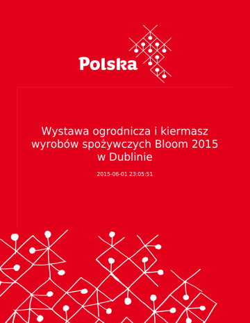 Wystawa ogrodnicza i kiermasz wyrobów spożywczych Bloom 2015 w Dublinie 2015-06-01 23:05:51 2 W dniach 28 maja – 1 czerwca 2015 r. na terenie Phoenix Park w Dublinie odbyła się wystawa ogrodniczy i kiermasz wyrobów spożywczych pod nazwą Bloom 2015, organizowany przez irlandzką agencję rządową Bord Bia W dniach 28 maja – 1 czerwca 2015 r. na terenie Phoenix Park w Dublinie odbyła się wystawa ogrodniczy i kiermasz wyrobów spożywczych pod nazwą Bloom 2015. Jest to coroczna impreza organizowana przez irlandzką agencję promocji i rozwoju sektora spożywczego Bord Bia. O wadze tej imprezy świadczy m.in. fakt, iż w oficjalnej ceremonii otwarcia wziął udział Prezydent Irlandii Michael D. Higgins oraz Minister Rolnictwa Simon Coveney. Termin festynu wypada na długi weekend, gdyż 1 czerwca jest w Irlandii dniem wolnym od pracy. Jak i w poprzednich latach organizatorom udało się zgromadzić podczas 5. dni trwania imprezy ponad 100 tys. odwiedzających. W tym roku w programie imprezy przewidziano m.in. pokazy projektowania ogrodów, konkursy układania kwiatów, ponad 120 stoisk lokalnych producentów żywności (owoce, warzywa, przetwory, wypieki), stoiska producentów narzędzi, urządzeń i rozwiązań dla domu i ogrodu, kiermasz ogrodniczy, wystąpienia ekspertów nt. pielęgnacji kwiatów, pokazy mody, porady odnośnie doboru garderoby, prezentacje wyrobów irlandzkiego rękodzieła oraz procesu ich tworzenia. Według organizatorów w trakcie imprezy swoje produkty i usługi oferowało ponad 300 wystawców. Pod względem handlowym impreza ta jest głównie nastawiona na promocję irlandzkich produktów. Może być ona jednak interesująca dla działających w Irlandii firm polonijnych zajmujących się projektowaniem i utrzymaniem ogrodów bądź sprzedażą roślin, narzędzi ogrodniczych czy szeroko pojętych artykułów dla domu z Polski. 3