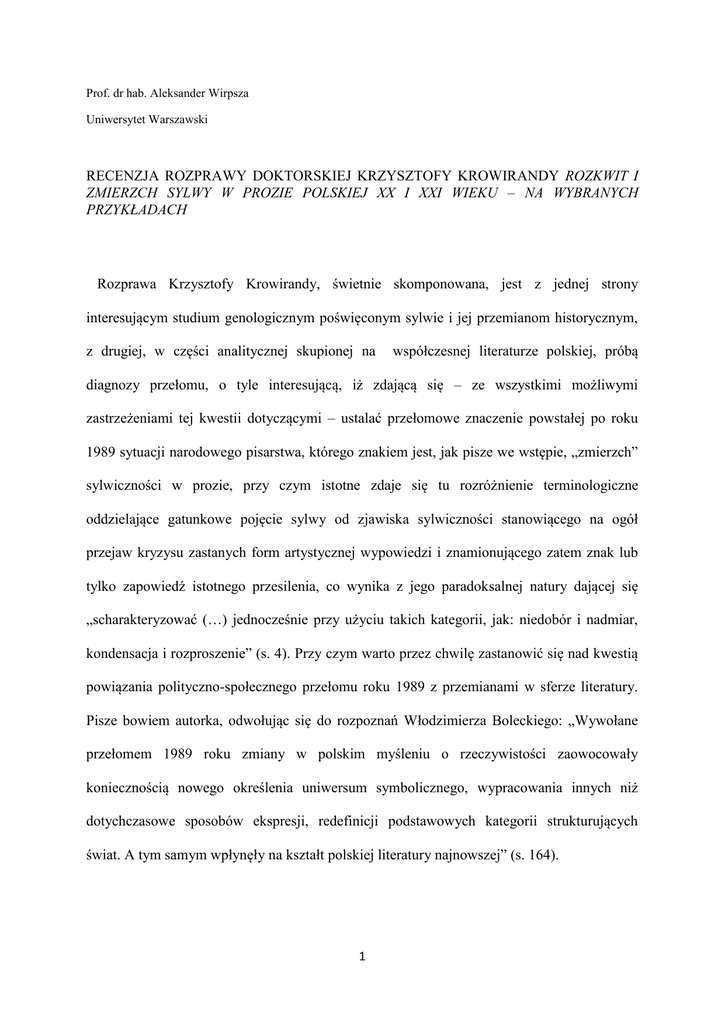 recenzja rozprawy doktorskiej krzysztofy krowirandy rozkwit i