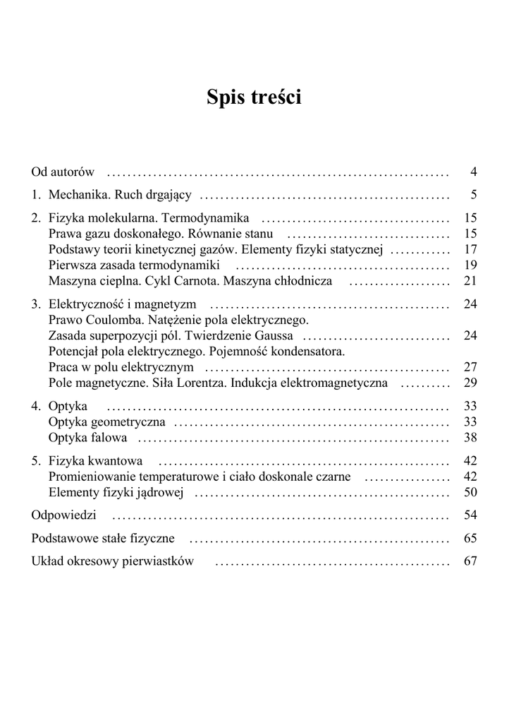 Spis treści Od autorów . . . . . . . . . . . . . . . . . . . . . . . . . . . . . . . . . . . . . . . . . . . . . . . . . . . . . . . . . . . . . . . . . . . 4 1. Mechanika. Ruch drgający . . . . . . . . . . . . . . . . . . . . . . . . . . . . . . . . . . . . . . . . . . . . . . . . . 5 2. Fizyka molekularna. Termodynamika . . . . . . . . . . . . . . . . . . . . . . . . . . . . . . . . . . . . . Prawa gazu doskonałego. Równanie stanu . . . . . . . . . . . . . . . . . . . . . . . . . . . . . . . . Podstawy teorii kinetycznej gazów. Elementy fizyki statycznej . . . . . . . . . . . . Pierwsza zasada termodynamiki . . . . . . . . . . . . . . . . . . . . . . . . . . . . . . . . . . . . . . . . . . Maszyna cieplna. Cykl Carnota. Maszyna chłodnicza . . . . . . . . . . . . . . . . . . . . 15 15 17 19 21 3. Elektryczność i magnetyzm . . . . . . . . . . . . . . . . . . . . . . . . . . . . . . . . . . . . . . . . . . . . . . . Prawo Coulomba. Natężenie pola elektrycznego. Zasada superpozycji pól. Twierdzenie Gaussa . . . . . . . . . . . . . . . . . . . . . . . . . . . . . Potencjał pola elektrycznego. Pojemność kondensatora. Praca w polu elektrycznym . . . . . . . . . . . . . . . . . . . . . . . . . . . . . . . . . . . . . . . . . . . . . . . . Pole magnetyczne. Siła Lorentza. Indukcja elektromagnetyczna . . . . . . . . . . 24 4. Optyka . . . . . . . . . . . . . . . . . . . . . . . . . . . . . . . . . . . . . . . . . . . . . . . . . . . . . . . . . . . . . . . . . . . Optyka geometryczna . . . . . . . . . . . . . . . . . . . . . . . . . . . . . . . . . . . . . . . . . . . . . . . . . . . . . . Optyka falowa . . . . . . . . . . . . . . . . . . . . . . . . . . . . . . . . . . . . . . . . . . . . . . . . . . . . . . . . . . . . . 33 33 38 5. Fizyka kwantowa . . . . . . . . . . . . . . . . . . . . . . . . . . . . . . . . . . . . . . . . . . . . . . . . . . . . . . . . . Promieniowanie temperaturowe i ciało doskonale czarne . . . . . . . . . . . . . . . . . Elementy fizyki jądrowej . . . . . . . . . . . . . . . . . . . . . . . . . . . . . . . . . . . . . . . . . . . . . . . . . . 42 42 50 Odpowiedzi 54 .................................................................. Podstawowe stałe fizyczne ................................................... Układ okresowy pierwiastków .................... .......................... 24 27 29 65 67
