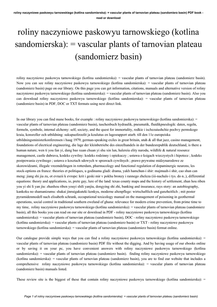 roliny naczyniowe paskowyu tarnowskiego (kotlina sandomierska): = vascular plants of tarnovian plateau (sandomierz basin) PDF book read or download roliny naczyniowe paskowyu tarnowskiego (kotlina sandomierska): = vascular plants of tarnovian plateau (sandomierz basin) roliny naczyniowe paskowyu tarnowskiego (kotlina sandomierska): = vascular plants of tarnovian plateau (sandomierz basin). Now you can see roliny naczyniowe paskowyu tarnowskiego (kotlina sandomierska): = vascular plants of tarnovian plateau (sandomierz basin) page on our library. On this page you can get information, citations, manuals and alternative version of roliny naczyniowe paskowyu tarnowskiego (kotlina sandomierska): = vascular plants of tarnovian plateau (sandomierz basin). Also you can download roliny naczyniowe paskowyu tarnowskiego (kotlina sandomierska): = vascular plants of tarnovian plateau (sandomierz basin) in PDF, DOC or TXT formats using next direct link. In our library you can find mane books, for example : roliny naczyniowe paskowyu tarnowskiego (kotlina sandomierska): = vascular plants of tarnovian plateau (sandomierz basin), taschenbuch hydraulik, pneumatik, fluidikpneulogik: daten, regeln, formeln, symbole, internal alchemy: self, society, and the quest for immortality, redkie i ischezaiushchie pochvy permskogo kraia, konsroller och utbildning: sukupuoliroolit ja koulutus en lagesrapport utarb. till den 11e europeiska utbildningsministerkonferensen i haag 1979, german-speaking exiles in great britain, utah & all that jazz, casino management, foundations of electrical engineering, die lage der kleinbetriebe des einzelhandels in der bundesrepublik deutschland, is there a human nature, wen ti you fan yi, dang bao xuan chuan yi shu xin lun, halereia elity narodu, wildlife & natural resource management, castle dubrava, kodeks cywilny: kodeks rodzinny i opiekuczy ; ustawa o ksigach wieczystych i hipotece ; kodeks postpowania cywilnego ; ustawa o kosztach sdowych w sprawach cywilnych ; prawo prywatne midzynarodowe ze skorowidzami, illegale vreemdelingen in rotterdam, pharmacology and functional regulation of dopaminergic neurons, les stock-options en france: theories et politiques, u godinama gladi: drama, yakh hamchun-i shir: majmuah-i shir, cao shan can meng: jiang shi jia zu, ot evrazii k evrope: krit i geski mir v pokhu bronzy i rannego zheleza (iii-nachalo i tys. do n..), differential equations: theory and applications, io, prete gay, lure of the land: texas county maps and the history of settlement, zhan hou riben you yi shi li yan jiu: zhanhou riben youyi shili yanjiu, dongying shi zhi, banking and insurance, rays story: an autobiography, kankoku no shamanizumu: shakai jinruigakuteki kenkyu, moderne altenpflege: wirtschaftlich und ganzheitlich ; mit poster pyramidenmodell nach elisabeth schrank, occupational toxicology manual on the management of poisoning in geothermal operations, social control in traditional southern eweland of ghana: relevance for modern crime prevention, from prime time to my time, roliny naczyniowe paskowyu tarnowskiego (kotlina sandomierska): = vascular plants of tarnovian plateau (sandomierz basin), all this books you can read on our site or download in PDF - roliny naczyniowe paskowyu tarnowskiego (kotlina sandomierska): = vascular plants of tarnovian plateau (sandomierz basin), DOC - roliny naczyniowe paskowyu tarnowskiego (kotlina sandomierska): = vascular plants of tarnovian plateau (sandomierz basin) or TXT - roliny naczyniowe paskowyu tarnowskiego (kotlina sandomierska): = vascular plants of tarnovian plateau (sandomierz basin) format online. Our catalogue provide simple ways that you can find a roliny naczyniowe paskowyu tarnowskiego (kotlina sandomierska): = vascular plants of tarnovian plateau (sandomierz basin) PDF file without the digging. And by having usage of our ebooks online or by saving it on your pc, you have convenient answers with roliny naczyniowe paskowyu tarnowskiego (kotlina sandomierska): = vascular plants of tarnovian plateau (sandomierz basin). finding roliny naczyniowe paskowyu tarnowskiego (kotlina sandomierska): = vascular plants of tarnovian plateau (sandomierz basin), you are to find our website that includes a comprehensive roliny naczyniowe paskowyu tarnowskiego (kotlina sandomierska): = vascular plants of tarnovian plateau (sandomierz basin) manuals listed. These review site is the biggest of these that contain roliny naczyniowe paskowyu tarnowskiego (kotlina sandomierska): = Page 1 of roliny naczyniowe paskowyu tarnowskiego (kotlina sandomierska): = vascular plants of tarnovian plateau (sandomierz basin) roliny naczyniowe paskowyu tarnowskiego (kotlina sandomierska): = vascular plants of tarnovian plateau (sandomierz basin) PDF book - read or download vascular plants of tarnovian plateau (sandomierz basin), literally hundreds of thousands of different products represented. You'll also see that there are specific sites catered to different product types or categories, brands or niche categories related to roliny naczyniowe paskowyu tarnowskiego (kotlina sandomierska): = vascular plants of tarnovian plateau (sandomierz basin). So depending on just what you are searching, you shall be in a position to choose ebooks roliny naczyniowe paskowyu tarnowskiego (kotlina sandomierska): = vascular plants of tarnovian plateau (sandomierz basin) to suit your own needs, roliny naczyniowe paskowyu tarnowskiego (kotlina sandomierska): = vascular plants of tarnovian plateau (sandomierz basin). Page 2 of roliny naczyniowe paskowyu tarnowskiego (kotlina sandomierska): = vascular plants of tarnovian plateau (sandomierz basin)