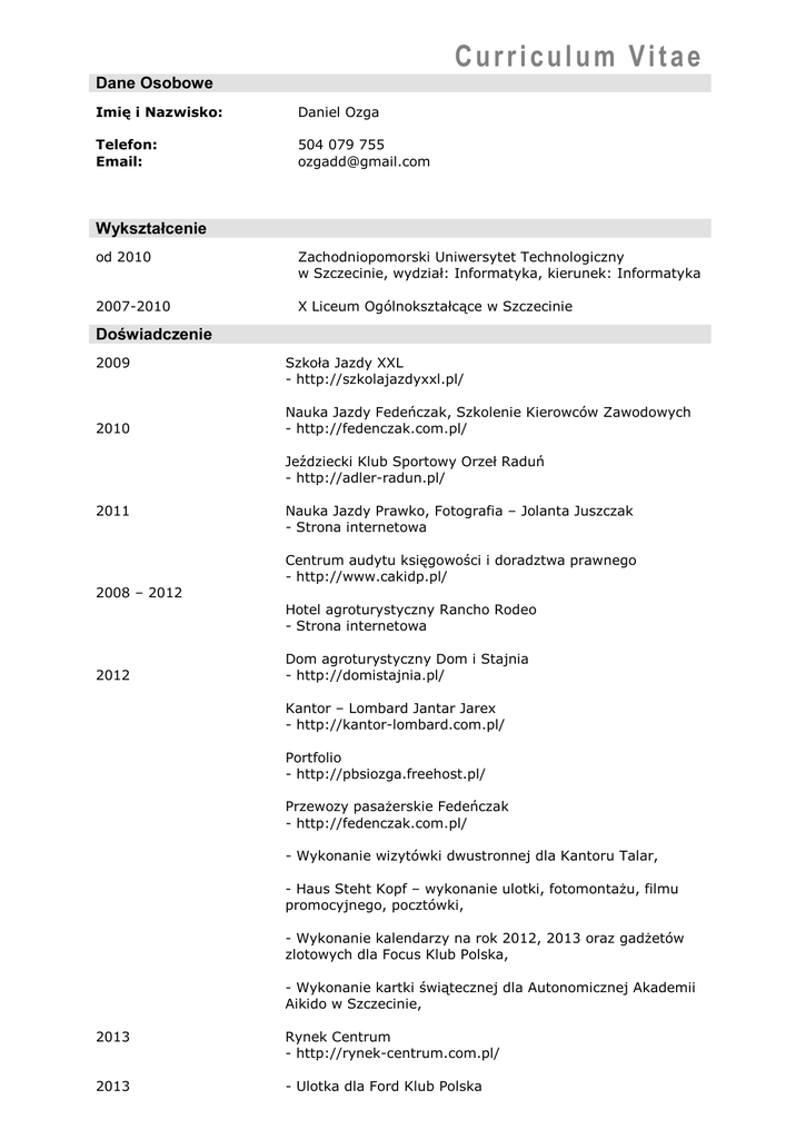 Curriculum Vitae - Ozga Daniel - Portfolio