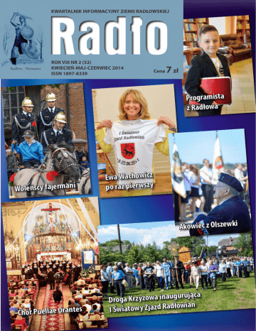 Radło KWARTALNIK INFORMACYJNY ZIEMII RADŁOWSKIEJ Radłów - Warszawa ROK VIII NR 2 (32) KWIECIEŃ-MAJ-CZERWIEC 2014 ISSN 1897-8339 Cena 7 zł Programista z Radłowa Woleńscy fajermani Ewa Wachowicz po raz pierwszy Akowiec z Olszewki Chór Puellae Orantes urująca g u a in a w żo y rz K a g Dro łowian I Światowy Zjazd Rad Fot. D. Kopacz, Z. Marcinkowski 3 W niedzielne południe 22 czerwca 2014 r., radłowski rynek i zgromadzeni na nim znamienici goście – uczestnicy Pierwszego Światowego Zjazdu Radłowian - byli świadkami uroczystego nadania tytułów Honorowych Obywateli Miasta i Gminy Radłów dwóm niezwykłym osobom związanym z ziemią radłowską. Burmistrz i przewodniczący Rady Miejskiej skierowali do wyróżnionych okolicznościowe słowa. Szanowny Pan Andrzej Seremet - Prokurator Generalny RP Mamy zaszczyt gościć Pana na historycznym I Zjeździe Radłowian i pragniemy wyrazić najwyższe uznanie za publiczną służbę na odpowiedzialnym stanowisku Prokuratora Generalnego Rzeczypospolitej Polskiej. Jest Pan absolwentem radłowskiej szkoły podstawowej i liceum, co stanowi powód do dumy dla lokalnej społeczności, a dla uczniów dowód, że warto mieć marzenia i z uporem je w życiu realizować. Sukcesy może osiągnąć każdy, kto wytrwale i z przekonaniem dąży do celu - Pan jest tego znakomitym przykładem i zarazem wzorem do naśladowania. Dziękujemy Panu, naszemu rodakowi, za przyjęcie tytułu Honorowego Obywatela Miasta i Gminy Radłów i serdecznie gratulujemy wyróżnienia. Liczymy na dalsze życzliwe kontakty i spotkania inspirujące radłowską młodzież do podejmowania trudnych wyzwań. Jego Eminencja Arcybiskup Józef Kowalczyk - Prymas Polski w latach 2010-2014 Z wielką radością gościmy Waszą Eminencję na historycznym I Zjeździe Radłowian i pragniemy wyrazić ogromne uznanie za długoletnią służbę dla dobra Kościoła i Polski. Wdzięczni też jesteśmy za liczne dowody sympatii okazywane naszemu miastu i życzliwą pamięć o radłowskim liceum, którego absolwentem jest Wasza Eminencja. Dziękujemy za przyjęcie tytułu Honorowego Obywatela Miasta i Gminy Radłów. Przyznając go wyrażamy nasz szacunek za działalność dyplomatyczną w Kościele, posługę duszpasterską i prymasowską, a także wieloletnie wspieranie naszej Małej Ojczyzny. Prosimy Waszą Eminencję o zachowanie w dobrej pamięci naszej ziemi radłowskiej, objęcie jej modlitwą i błogosławieństwem. Nieustająco zapraszamy do odwiedzania naszej gminy i korzystania z jej uroków. Piotr Kapera Przewodniczący Rady Miejskiej Zbigniew Mączka Burmistrz Radłowa Fot. D. Kopacz Mieszkańcy Ziemi Radłowskiej - Radłów. 22 czerwca. 2014 roku 4 Wydarzenia Radło Nr 2/2014 18 czerwca rozpoczął się I Światowy Zjazd Radłowian, jedna z największych imprez w gminie Radłów. Pomysłodawcą i organizatorem tego bezprecedensowego wydarzenia było Stowarzyszenie Radłowskie Forum Rozwoju oraz burmistrz Radłowa. Radłowskie spotkania po latach… Przygotowania trwały prawie rok. Zjazd zorganizowano z dużym rozmachem i udziałem mieszkańców gminy Radłów - obecnie mieszkających na tym terenie i także tych przebywających poza granicami kraju, ale w sercach pozostających radłowianami. Zaproszeni goście wzięli udział w pięciodniowej imprezie, która przybliżyła im historię gminy i całego obszaru Lokalnej Grupy Działania „Kwartet na Przedgórzu”. Zaprezentowano też sylwetki osób znanych w świecie kultury i nauki, a wywodzących się właśnie z gminy Radłów. Pierwszego dnia zaproszono gości do udziału w Drodze Krzyżowej „Szlakiem Męczeństwa bł. Karoliny Kózki”. W Wał-Rudzie uczestnicy mieli okazję zwiedzić dom rodzinny błogosławionej. Przedstawiona została postać bł. Karoliny, jej życie i droga do świętości. Na zakończenie odbyła się msza św. pod gruszą, pod którą nauczała bł. Karolina. Drugiego dnia, przy okazji Święta Bożego Ciała wyeksponowano walory historyczne i kulturowe związane z obchodami tego religijnego święta. Wielu uczestników zjazdu mieszka na obczyźnie i są oni często pozbawieni możliwości pielęgnowania i kultywowania tradycji oraz udziału w procesji Bożego Ciała w strojach historycznych i ludowych. Po uroczystej procesji odbył się występ Orkiestry Dętej z Radłowa wykonującej regionalne utwory. 20 czerwca 2014 r. zaproponowano uczestnikom zjazdu zwiedzanie miejsc pamięci i historii całego obszaru LGD. Zaproszeni goście przejechali autokarami trasą: Radłów (kościół pw. św. Jana Chrzciciela, pałac Dolańskich, Pomnik Obrońców Szkoły) – Dębno (Zamek) Wydarzenia Radło Nr 2/2014 – Porąbka Uszewska (Grota) – Szczepanów (Sanktuarium Stanisława BM) - Brzesko (Browar, Pałac Goetzów) – Borzęcin (Pomnik Mordu Romów) – Wał-Ruda (dom rodzinny bł. Karoliny, pomnik Akcji III Most). W ramach czwartego i piątego dnia zaplanowano cykl imprez promujących dorobek artystyczny, kul- turowy oraz historię obszaru LGD i szczególnie gminy Radłów. W sobotę 21 czerwca odbył się piknik, przy okazji którego zaprezentowany został dorobek artystyczny lokalnych twórców. Zorganizowano wspólne biesiadowanie, a na zakończenie dnia zagrał zespół Baciary, który zgromadził najliczniejszą publiczność. W niedzielę 22 czerwca I Światowy Zjazd Radłowian rozpoczął się uroczystą mszą św. pod przewodnictwem abpa Józefa Kowalczyka. Następnie wszyscy zgromadzeni przeszli w historycznym orszaku z kościoła na radłowski rynek, gdzie burmistrz Radłowa wraz z przewodniczącym Rady Miejskiej wręczyli tytuły Honorowego Obywatela Miasta i Gminy Radłów. Odebrali je: były prymas Polski abp Józef Kowalczyk oraz prokurator generalny RP Andrzej Seremet. Niedzielną uroczystość uświetnił również występ Formacji Teatralnej EPITET z Zespołu Szkół w Radłowie, który wystawił przedstawienie historyczne pt. „Rycerz 5 Radło, czyli historia Herbu Miasta 