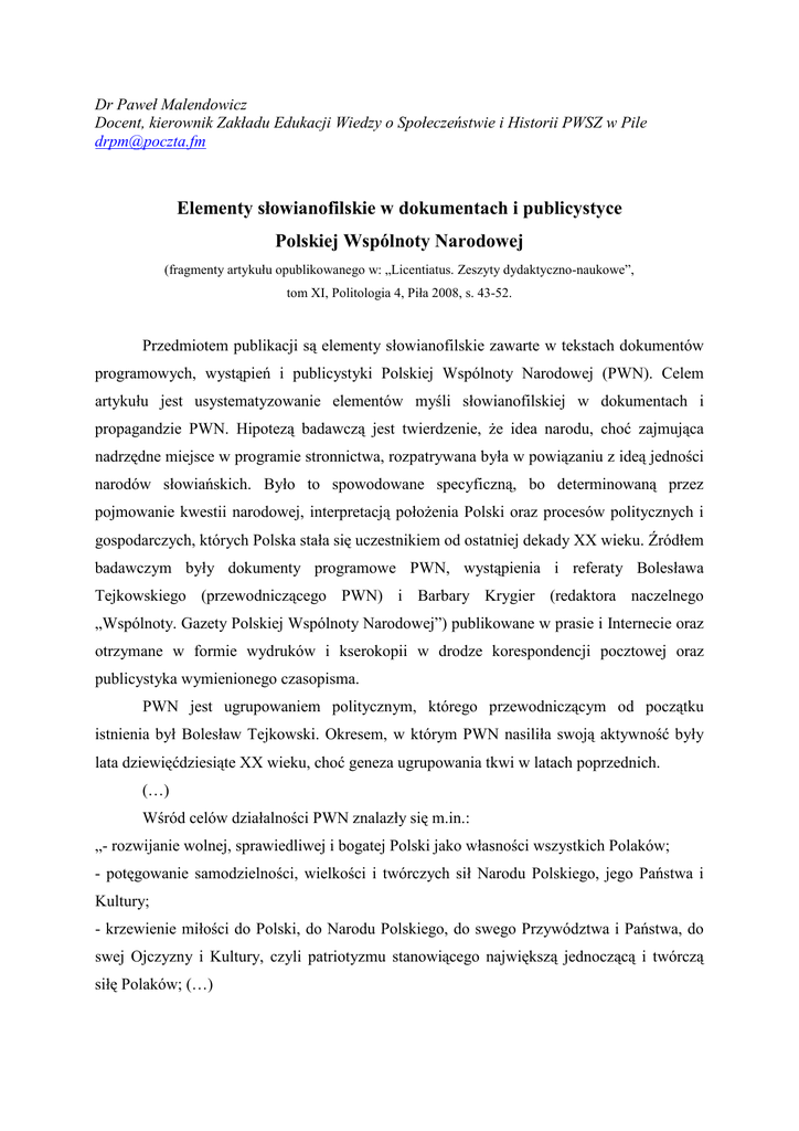 P. Malendowicz Elementy słowianofilskie w dokumentach PWN