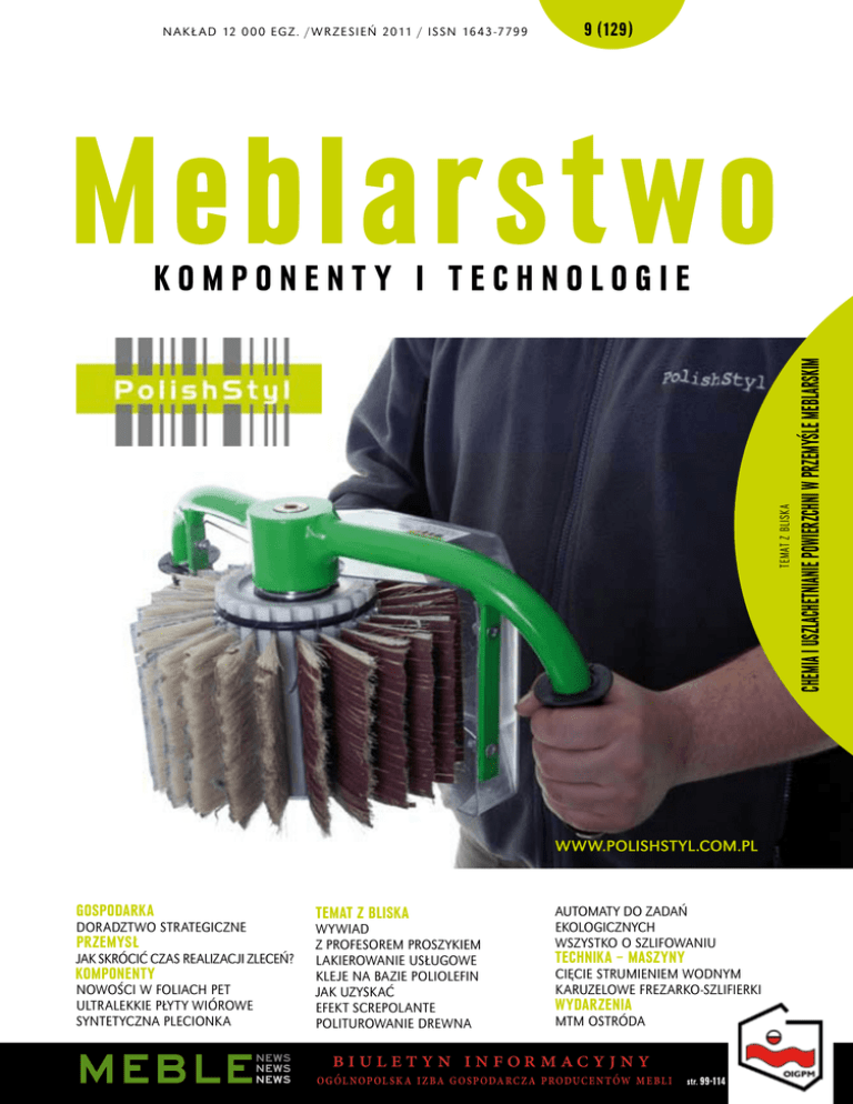 ÝÝÝ ; @' <ê G ;@ ; ' < ó 2 ñ @ b i u l e t y n i n f o r m a c y jËÓÊÊðÒõÊËÒößßÊ ny ogólnopolska izba gospodarcza producentów mebli vwuÝÒÒñÊÊÍ G ÒõÊËÒö ; ÊËÓ Ó Ó Ýð <ËÓÊÊð ÊÏÍÌ ñÐÐÒÒ whfkqrorjlh G }f}rwnd«flhuqdwrqdu}g}lhânw¥uhrsw|pdol}xmhsurfhvz|nd¡f}dqldsrzlhu}fkql srgf}dvv}olirzdqldguhzqdâpdwhuld ¥zguhzqrsrfkrgq|fklsrz rnodnlhuqlf}|fkÝ hgqdnvdprqdu}g}lhwrqlhzv}|vwnrâjg|¸nrqlhf}q|mhvwrgsrzlhgqlgre¥ufd hm whfkqrorjllÝrpsohnvrzhxv xjlzw|p}dnuhvlhrihuxmhupdrolvkw|oósrovnl surgxfhqwv}f}rwhn«flhuq|fklgrudgfdz}dnuhvlhwhfkqrorjllv}olirzdqldÝr}pdzldp }mhmsuh}hvhpórjxv dzhp}nxwqlnlhpÝ Meblarstwo: Na tegorocznych targach DREMA niewielkie stoisko PolishStyl było wręcz oblegane przez zwiedzających. Za każdym razem, kiedy przechodziłam obok niego, nie sposób było nie zauważyć tłumów klientów. Czy zatem oferujecie produkty tak unikatowe czy tak ciekawe, a może jedno i drugie? Bogusław Szkutnik: Przede wszystkim od trzech lat produkujemy szczotki ścierne, które można stosować zarówno w liniach produkcyjnych, jak i w szlifierkach pracujących indywidualnie oraz szczotkarko-szlifierkach ręcznych. ósu}hgdmhp|qdv}|pnolhqwrp whfkqrorjlâ}dnw¥uelhu}hp|rgsrñ zlhg}ldoqr«âjg|¸eh}rgsrzlhgqlhjr grudg}wzdlsu}hsurzdg}dqldsu¥eqd surgxnfmlz d«flz|mhmgre¥uqlhe| e| pr¸olz|óp¥zlrjxv dz}nxwqlnÝ }f}rwnl«flhuqhsr}zdodmqdz|holplqrzdqlhsudfuf}q|fk}surfhv¥zz|nd¡f}dqldsrzlhu}fkqlhohphqw¥zÝ Ý ÐÍßßËÓÊÊðÒõÊËÒö rwÝrolvkw|o G dwdu}|qduolnrzvnd whfkqrorjlh Meblarstwo: Do jakich operacji szczotki te są szczególnie przydatne? B.Sz.: Zastosowanie technologii szczotek ściernych w przemyśle meblarskim powoduje znaczące obniżenie kosztów pracy podczas szlifowania elementów zarówno przed, jak i po lakierowaniu. Dodatkowym efektem zastosowania tej technologii jest powtarzalne zaokrąglanie ostrych krawędzi elementów. Jedna szczotkarka jest w stanie zastąpić nawet kilkunastu pracowników wykonujących operację ręcznego szlifowania. Nasze szczotki doskonale sprawdzają się w obróbce elementów nie tylko drewnianych, ale także z płyty MDF, np. podczas produkcji foliowanych frontów, które przed nałożeniem kleju należy odpowiednio wyszlifować. Niestety, wciąż w wielu fabrykach w Polsce operacje te wykonuje się ręcznie. A przecież wystarczy taki front z wyfrezowanym profilem umieścić w szczotkarce, aby nadać mu finalną gładkość powierzchni. Poza tym dzięki szczotkom ściernym uzyskujemy powtarzalną i równomierną jakość szlifowanej powierzchni. hfkqrorjldx¸|zdqldv}f}rwhn«flhuq|fkzsu}hp|«ohpheoduvnlpsrzrgxmh}qdf}fhreql¸hqlh nrv}w¥zsudf|srgf}dvv}olirzdqldhohphqw¥zsu}hgâmdnlsrodnlhurzdqlxÝ Ý Meblarstwo: PolishStyl oferuje tylko jeden rodzaj szczotki? B.Sz.: Każda głowica do szczotkowania zbudowana jest z korpusu nośnego oraz umieszczonych na jej obwodzie wymiennych wkładów ściernych – szczotek, które bezpośrednio szlifują element. Szczotki ścierne dostępne są w oprawie plastikowej – przeznaczone do mniejszych obciążeń oraz aluminiowej – do intensywnej pracy. Głowice mogą być wykonane ze stopu metali lekkich bądź z odpowiednio sztywnego i odpornego na odkształcenia tworzywa sztucznego. Taka budowa pozwala rzlfhz|nrq|zdqhv}urzndplsurvw|ploxevnuwq|plâfrzsr f}hqlx }uhjxodfmnlhuxqnxreurw¥zj rzlf|xpr¸olzldhihnw|zqhv}olirzdqlh fd |fks dv}f}|}qâmdnlnudzg}lhohphqw¥zÝÝ przenieść duże obciążenia podczas szlifowania, bez uszczerbku dla trwałości głowicy i napędu maszyny. Do standardowych szczotkarek firma PolishStyl oferuje głowice walcowe i tarczowe, natomiast do maszyn CNC również głowice stożkowe. Głowice walcowe wykonywane są z rowkami prostymi lub skrętnymi. Te drugie zajmują mniej miejsca w maszynie niż głowice proste, które w większości przypadków powinny być ustawione pod kątem do transportu. W połączeniu z regulacją kierunku obrotów głowicy umożliwia to efektowne szlifowanie zarówno całej płaszczyzny, jak rsurgxnfmlv}f}rwhnpr¸qd}dvwrvrzds ¥wqr«flhuqhâz ¥nqlq«flhuqâ vn¥uqdwxudoqâdeudorqâz rvlhur«olqqhoxez rvlhnr¡vnlhÝ Ý ËÓÊÊðÒõÊËÒößßÐÎ G Są one narzędziami bardzo uniwersalnymi i znajdują zastosowanie zarówno w małych warsztatach stolarskich, jak i dużych fabrykach, redukując w znacznym stopniu nakłady pracy ręcznej. Szczotka nie pracuje na takiej zasadzie jak taśma ścierna. Jest to narzędzie elastyczne, w którym nie dochodzi do wykruszania się materiału ściernego, jak to ma miejsce w przypadku zbyt dużych docisków i naddatków podczas szlifowania taśmą ścierną. Bardzo dobre efekty szlifowania szczotkami ściernymi uzyskuje się, pracując na stosunkowo niewielkich prędkościach rzędu 150-400 obr./min. whfkqrorjlh G i krawędzi elementów. Różny jest także system blokowania szczotek i zależy od konstrukcji maszyny, dzięki czemu ich wymiana jest prosta i szybka, bez konieczności demontażu całej głowicy z maszyny. Meblarstwo: A jakie rodzaje wkładów ściernych są dostępne? B.Sz.: W zależności od potrzeb produkcyjnych i efektu, który chcemy uzyskać, do szczotek można zastosować płótno ścierne, włókninę ścierną, skórę naturalną, abralon, włosie roślinne lub włosie końskie. Odpowiedni dobór tych materiałów, jak i ich granulacji, nacięć oraz sposobu podparcia zapewnia uzyskanie optymalnego efektu podczas wykonywania operacji szlifowania, polerowania bądź rozcierania oleju i wosku. PolishStyl produkuje szczotki jedno- i dwurzędowe, o wysokości włosia od 20 do 110 mm i nacięciach płótna co 2, 4, 7, 20, 50 i 100 mm lub bez nacięć. Zakończenia pasków płótna mogą być proste, łukowe lub stożkowe. Meblarstwo: Czy oprócz sprzedaży szczotek ściernych PolishStyl oferuje także doradztwo w zakresie doboru odpowiedniej technologii szlifowania? B.Sz.: Oczywiście. Poza tym jeśli wymaga tego technologia naszego klient