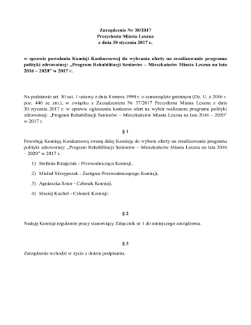 Zarządzenie 38/2017 - Urząd Miasta Leszna