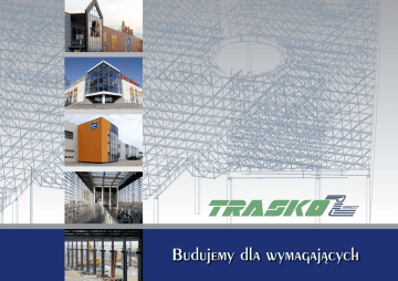 Budujemy dla wymagających Budujemy dla wymagających Kompleksowa obsługa inwestycji • Budowa i serwis powykonawczy Spis treści Wstęp Prezentacja wybranych obiektów zrealizowanych przez firmę TRASKO - INWEST Sp. z o.o. Polska • Centra logistyczne • Obiekty handlowe • Zakłady produkcyjne Inne kraje • Rosja • Ukraina • Białoruś • Chorwacja Charakterystyka procesu inwestycyjnego TRASKO - INWEST Sp. z o.o. Wykaz obiektów zrealizowanych przez TRASKO - INWEST Sp. z o.o. w latach1999 – 2012 Wstęp Szanowni Państwo! Уважаемые Господа Dear Sirs / Madam, Jesteśmy firmą budowlaną działającą na rynku od 1999 roku. Wykonujemy usługi na rynku polskim, a także poza granicami kraju (m.in. Rosja, Ukraina, Białoruś). Specjalizujemy się w generalnym wykonawstwie obiektów w sektorze budownictwa ogólnego i przemysłowego. Z sukcesem realizujemy wszystkie etapy inwestycji budowlanych, rozpoczynając od koncepcji, projektu budowlanego oraz wykonawczego, przez fazę realizacji, aż do oddania gotowego obiektu „pod klucz”. Przejmujemy na siebie ryzyko związane z realizacją inwestycji, pozwalając Państwu skupić się na prowadzeniu własnej działalności. Zaufali nam m.in. tacy klienci, jak: Auchan, Kronospan Grupa Polska, Classen, Międzynarodowe Targi Poznańskie. Nasi klienci oczekują od nas profesjonalizmu. Od lat konsekwentnie budujemy zespół fachowców. Specjalistyczne kompetencje łączymy z bogatym doświadczeniem. Dzięki temu jesteśmy w stanie realizować nawet najbardziej skomplikowane projekty. Zdobyte doświadczenie oraz stabilna kondycja ekonomiczna firmy wzmacnia naszą wiarygodność i pozwala nam oferować najwyższy poziom usług oraz konkurować z innymi czołowymi firmami z branży budowlanej. Nasze wysokie kwalifikacje potwierdzają przyznane ostatnio wyróżnienia: — Nagroda w konkursie „PIĘKNY WROCŁAW – 2012”, — Jakość Roku 2011, — Tytuł „RUBINOWY HIT 2011”, — I nagroda w konkursie „Orły Polskiego Budownictwa 2011, — Certyfikat„Najwyższa Jakość w Budownictwie 2011”, — Certyfikat„Polish Product 2011”, — Jakość Roku 2010, — Przedsiębiorstwo FAIR PLAY 2010, — Nagroda „LIDERZY MARKI” — Przedsiębiorstwo „FAIR PLAY 2009”, — Jakość Roku 2009, — I miejsce w konkursie „Orły Polskiego Budownictwa 2009”, — Laureat konkursu „TERAZ POLSKA”, — Certyfikat „SOLIDNA FIRMA”, — Nominacja do nagrody w kategorii „WZROST”, — III miejsce w konkursie „Orły Polskiego Budownictwa 2008”, — Tytuł „HIT 2008”, — „DIAMENT FORBESA” w Województwie Wielkopolskim, — Laureat plebiscytu „FILARY POLSKIEJ GOSPODARKI 2008”, — II miejsce w konkursie „Orły Polskiego Budownictwa 2007”, — miejsce w dziesiątce najbardziej dynamicznych firm budowlanych w Polsce (Ranking „Rzeczpospolitej” z 2007 r.), — certyfikat„Najwyższa Jakość w Budownictwie”, — Mister Budownictwa, — Modernizacja Roku 2006. Fundamentalnym celem naszej Spółki jest zadowolenie Klienta poprzez kompleksowość usług budowlanych zdeterminowanych takimi wartościami, jak: terminowość, jakość wykonania, otwartość na nowe technologie. Наша компания является строительной фирмой действующей на рынке с 1999 года. Выполняем работы на польском рынке а также за рубежом (напр. в России, Украине, Беларуси). Мы специализируемся в генеральном подряде объектов в сфере общего и промышленного строительства. С успехом реализируем все этапы строительных инвестиций, начиная с концепции, строительного и рабочего проектов, через этап реализации по сдачу готового объекта «под ключ». Берем на себя риск связан с реализацией инвестиции, позволяя Вам сосредоточиться на ведении собственной деятельности. Нам доверили такие клиенты как: Ашан (Auchan), Группа Кроноспан (Grupa Kronospan), Классен (Classen), Международная познанская ярмарка (MTP). Наши клиенты требуют с нас профессионализма. Уже много лет строим коллектив специалистов. Специализированную компетенцию связываем с богатым опытом. Благодаря тому мы в состоянии реализовать даже самые сложные проекты. Опыт, который мы получили а также стабильная экономическая форма компании укрепляет нашу достоверность и позволяет нам предложить самый высокий уровень услуг а также конкурировать с другими ведущими фирмами строительной отрасли. Нашу высокую квалификацию подтверждают полученные за последнее время отличия: — Награда в конкурсе «КРАСИВЫЙ ВРОЦЛАВ – 2012», — Качество Года 2011, — Звание «РУБИНОВЫЙ ХИТ 2011», — I место в конкурсе «Орлы Польского Строительства 2011», — Сертификат «Высшее Качество в Строительстве 2011», — Сертификат «Polish Product 2011», — Качество Года 2010, — Предприятие FAIR PLAY 2010, — Награда «ЛИДЕРЫ БРЕНДА», — 