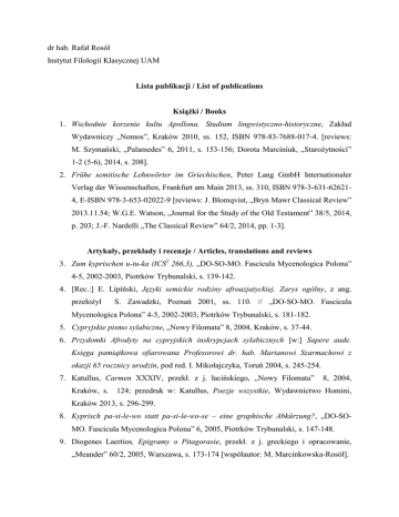 Rosol - List of Publications - Instytut Filologii Klasycznej