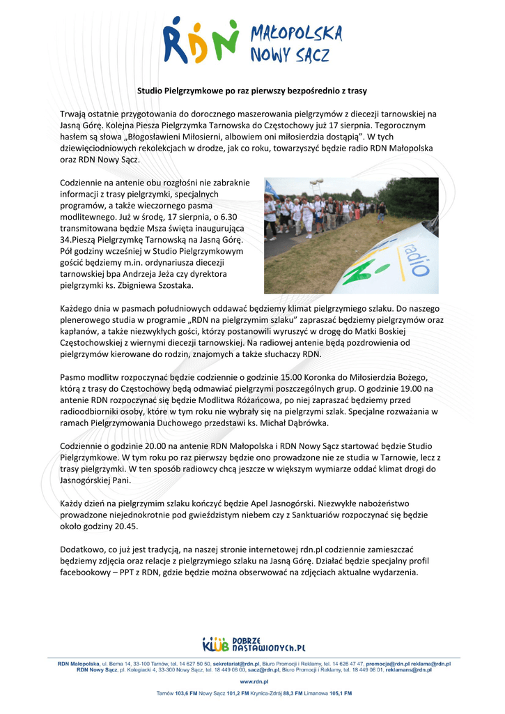 Informacja prasowa dot. studia pielgrzymkowego ()