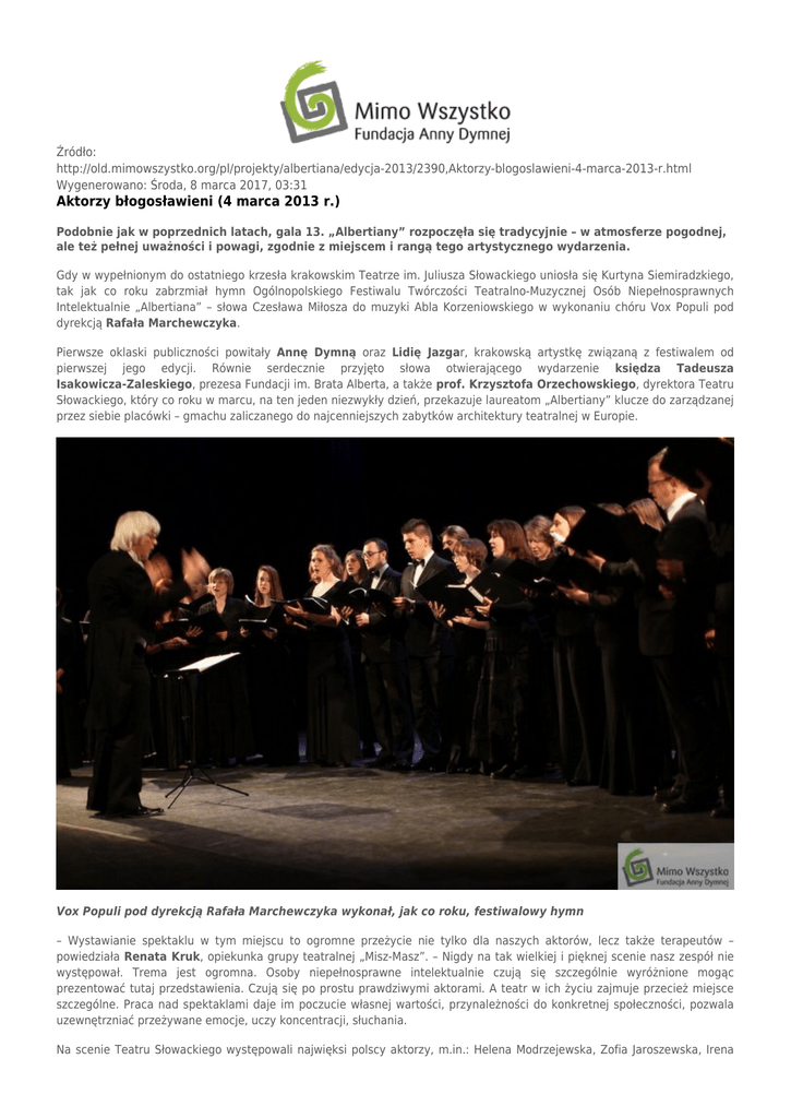 Aktorzy błogosławieni (4 marca 2013 r.) - Mimo Wszystko