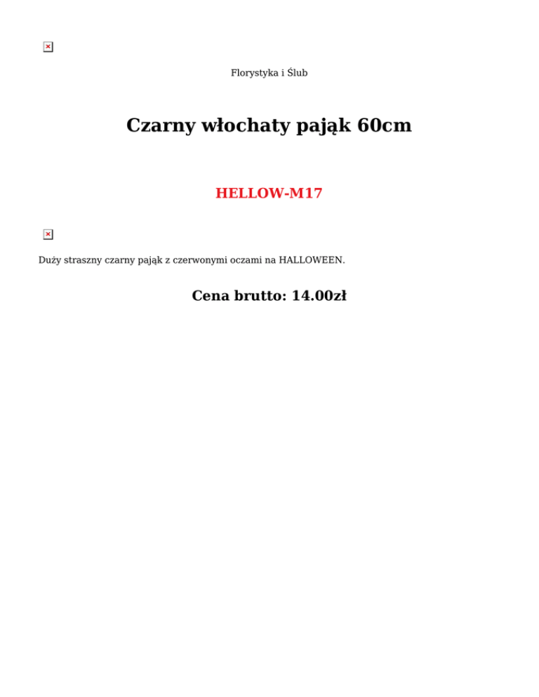 Florystyka i Ślub Czarny włochaty pająk 60cm HELLOW-M17 Duży straszny czarny pająk z czerwonymi oczami na HALLOWEEN. Cena brutto: 14.00zł