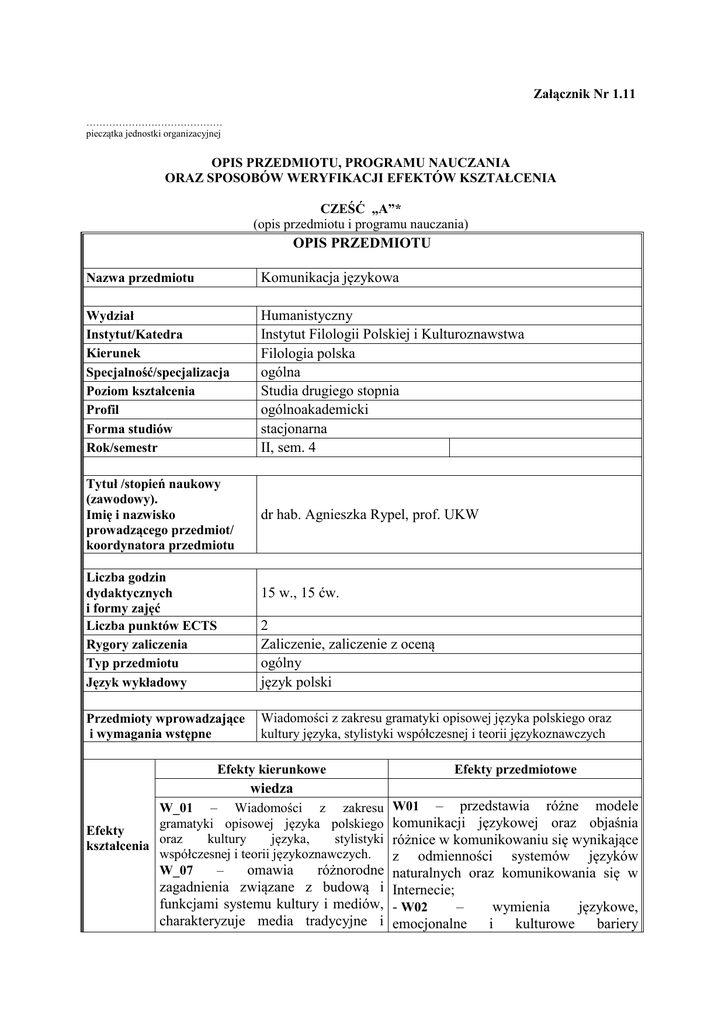 Komunikacja językowa. - Instytut Filologii Polskiej i Kulturoznawstwa