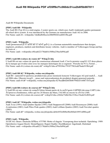 Audi R8 Wikipedia PDF 78a15f60426c2915dd152846f817e279