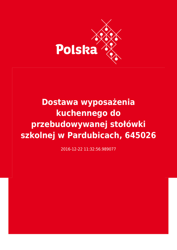 Dostawa wyposażenia kuchennego do przebudowywanej stołówki szkolnej w Pardubicach, 645026 2016-12-22 11:32:56.989077 2 3 Ta oferta nie stanowi informacji handlowej Dane kontaktowe Pardubický kraj 53211 Pardubice Komenského náměstí 125 Czechy Osoba kontaktowa Pavel Menšl [email protected] Tel: +420 605551501 zakazky.pardubickykraj.cz Opis przedmiotu zamówienia Przetarg nr 645026; miejsce realizacji/dostaw: Pardubice; maksymalna cena zamówienia (bez VAT) wynosi 8 433 000 CZK (tj. ok. 1,39 mln PLN). Informacje uzupełniające Szczegółowe informacje znajdują się w dokumentacji przetargowej (https://zakazky.pardubickykraj.cz/contract_display_1109.html) oraz na stronie: https://www.vestnikverejnychzakazek.cz/SearchForm/SearchContract?contractNumb er=645026. Osoba kontaktowa z WPHI (nadawca informacji o przetargu): Krzysztof Dębiec (tel.: +420 271 732 342; e-mail: [email protected]). CPV ● Meble (włącznie z biurowymi), wyposażenie, urządzenia domowe (z wyłączeniem 4 ● oświetlenia) i środki czyszczące Sprzęt kuchenny Forma przetargu Międzynarodowy Kraj Czechy Zakres przetargu Regały, stoły, szafki, zamrażarki, przyrządy kuchenne, wagi itp. Adres WWW www.vestnikverejnychzakazek.cz/SearchForm/SearchContract?contractNumber=645 026 Termin składania ofert 02.01.2017 Ważna od 18.11.2016 Branże Meble, Produkcja mebli, AGD, Maszyny i urządzenia, 5